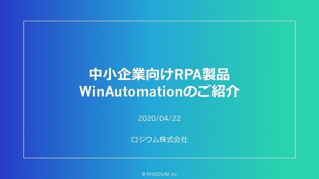 中小企業向けRPA製品 WinAutomationのご紹介 ロジウム株式会社 © RHODIUM.inc 2020/04/22