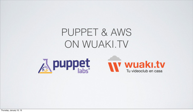 to an AMI. PuppetMaster can allow domains to be autosigned (autosign.conf). Create a cron so you can look for new instances and sign their SSL.* Autosign certain scopes (*.wuaki.tv) Manually sign SSL* * not efficient with autoscaling. Thursday, January 10, 13
