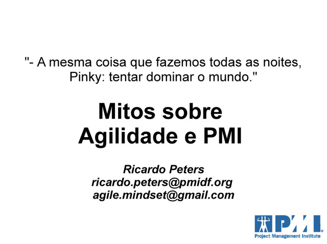 tentar dominar o mundo." Mitos sobre Agilidade e PMI Ricardo Peters [email protected] [email protected]