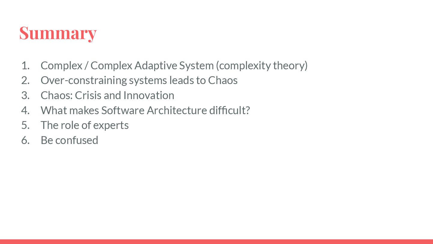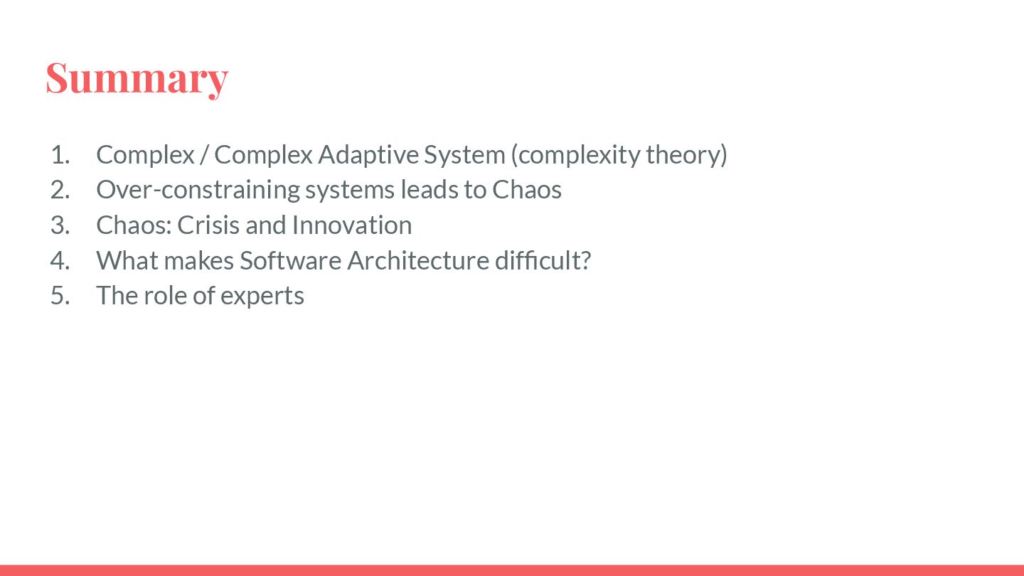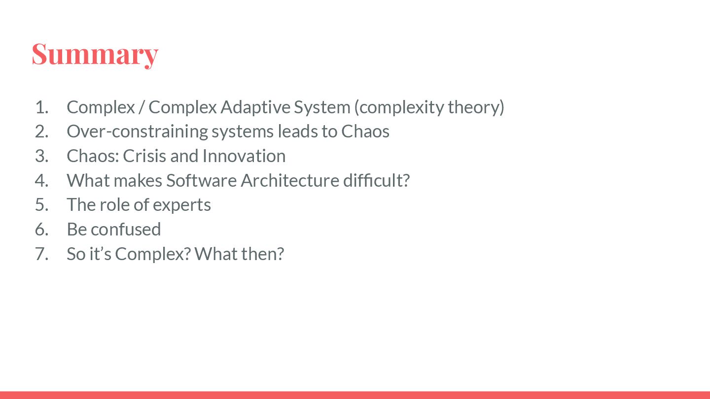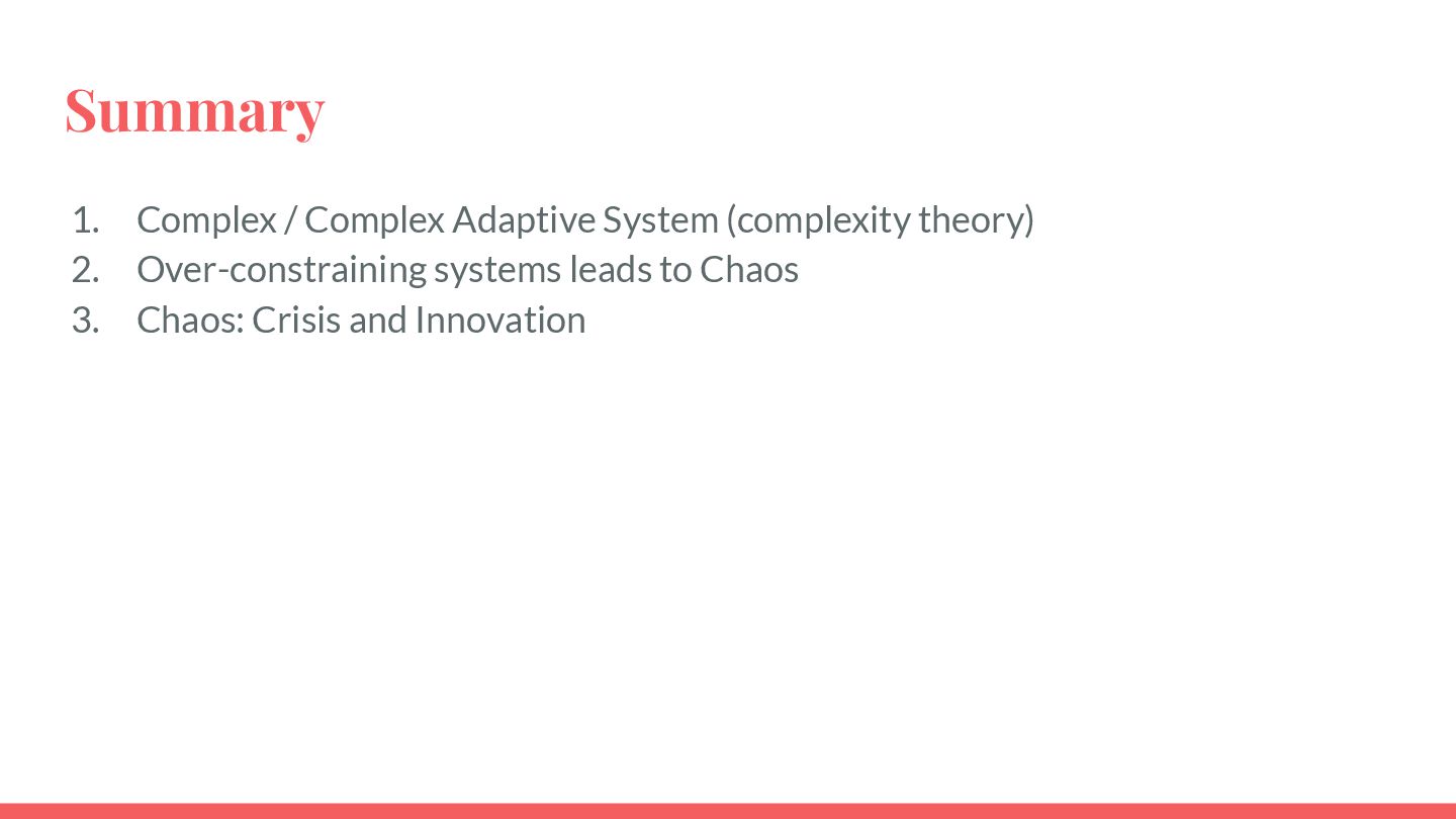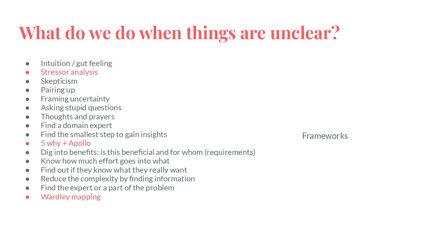 safe-to-fail experiments • Exploration requires different skills from exploitation • Hypotheses must be coherent • Cluster before categorizing -> Do not assume structure • Know modulators, create fast real-time feedback loops, modify modulator so that the system evolves in a sustainable and coherent way