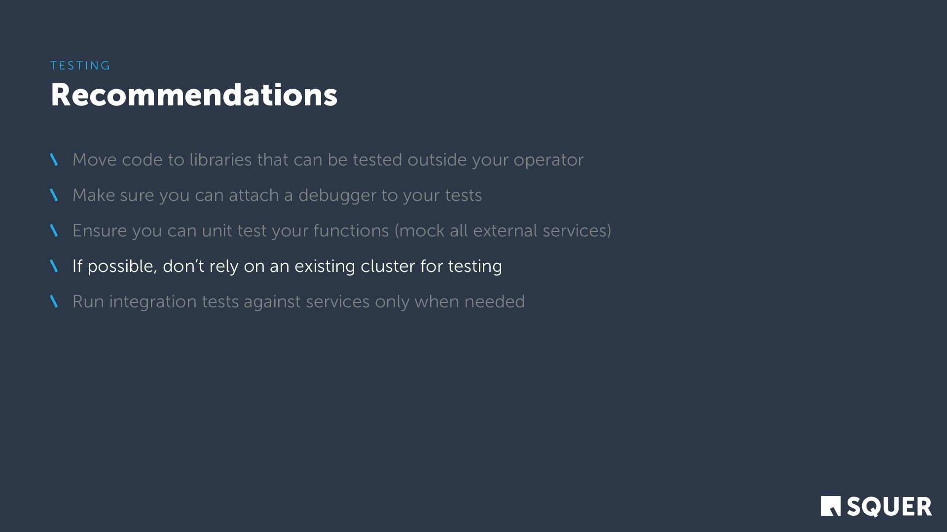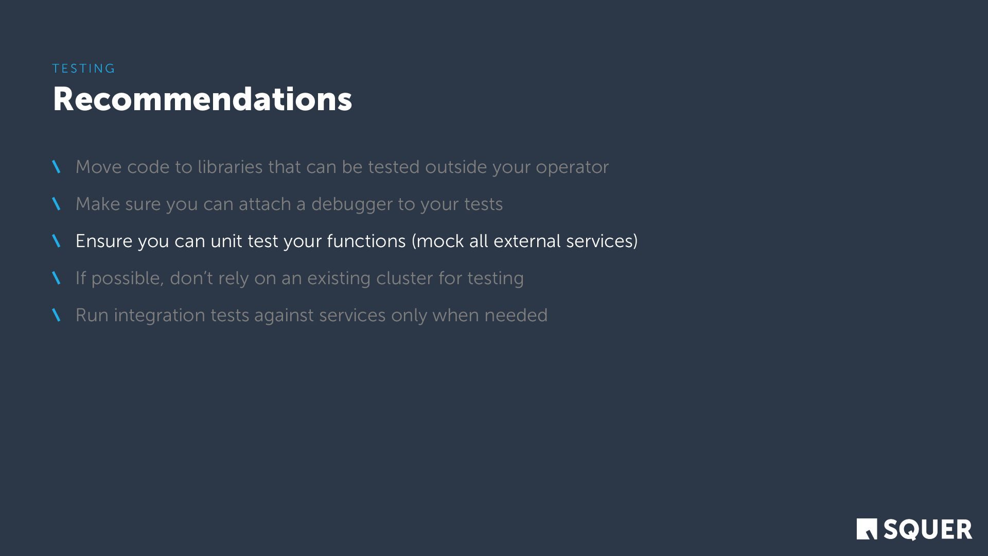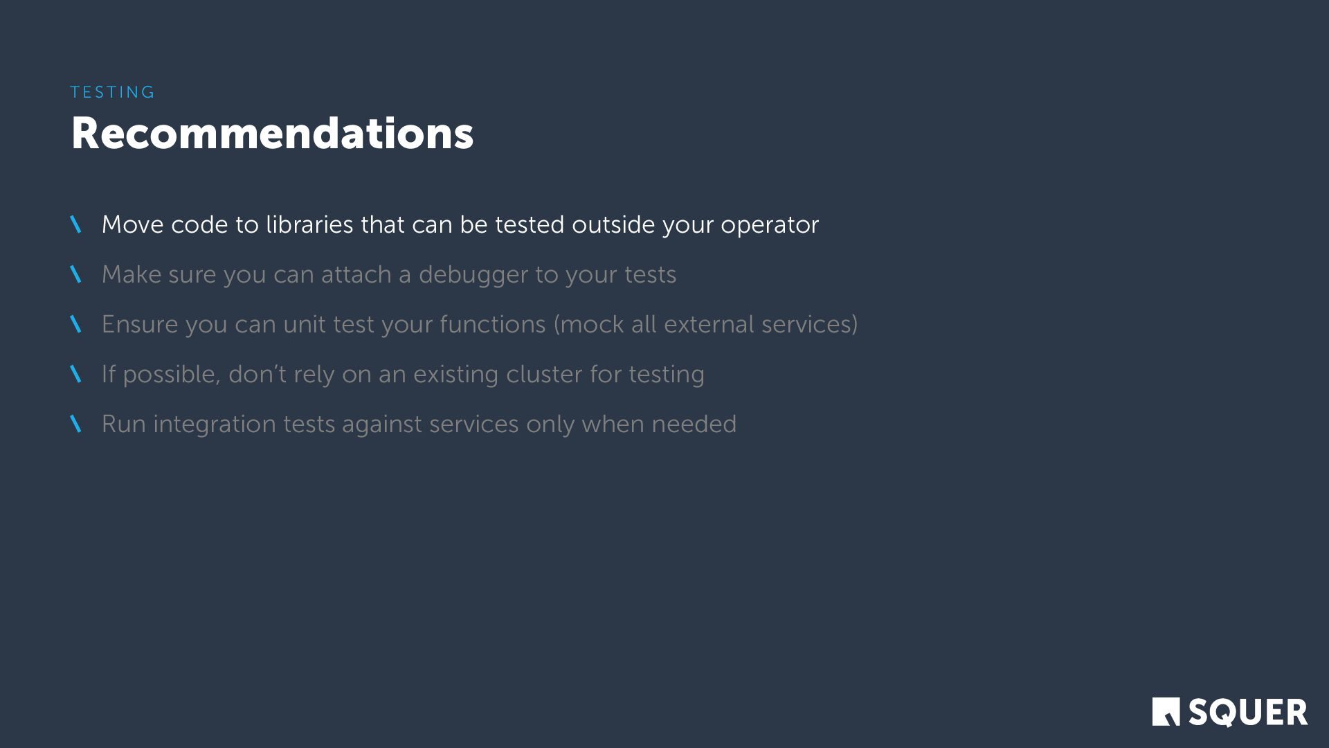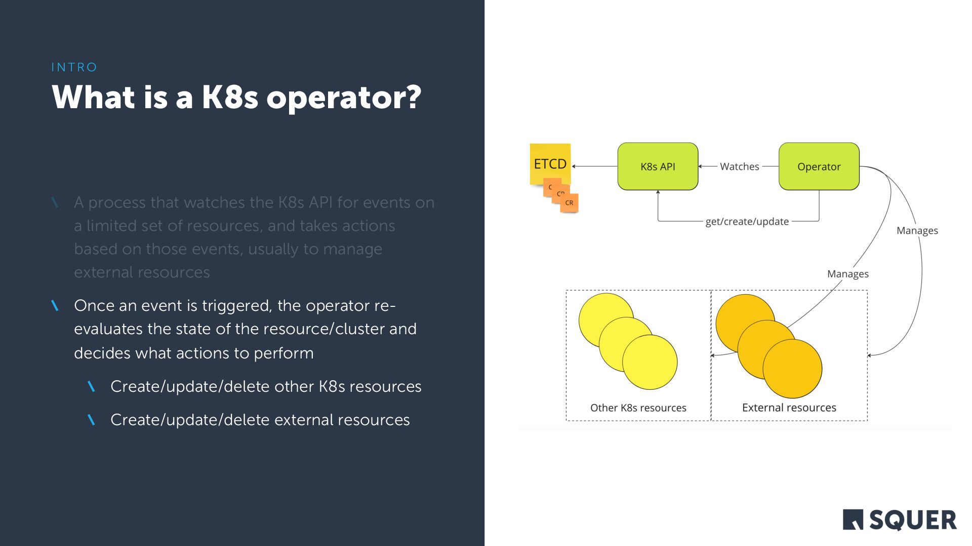 We often hear people talking about Kubernetes (K8s) operators and if you ever used K8s you surely have deployed at least one. However, when the time comes to implement your first operator, it is sometimes challenging to keep in mind what matters and ensure the code we write can be testable, especially when it has to interact with multiple external services.