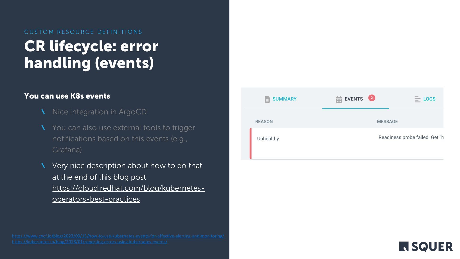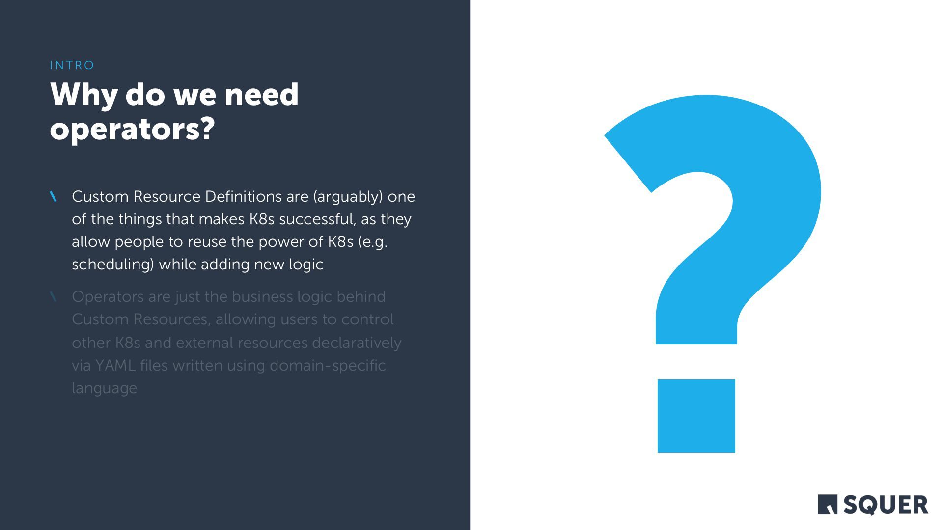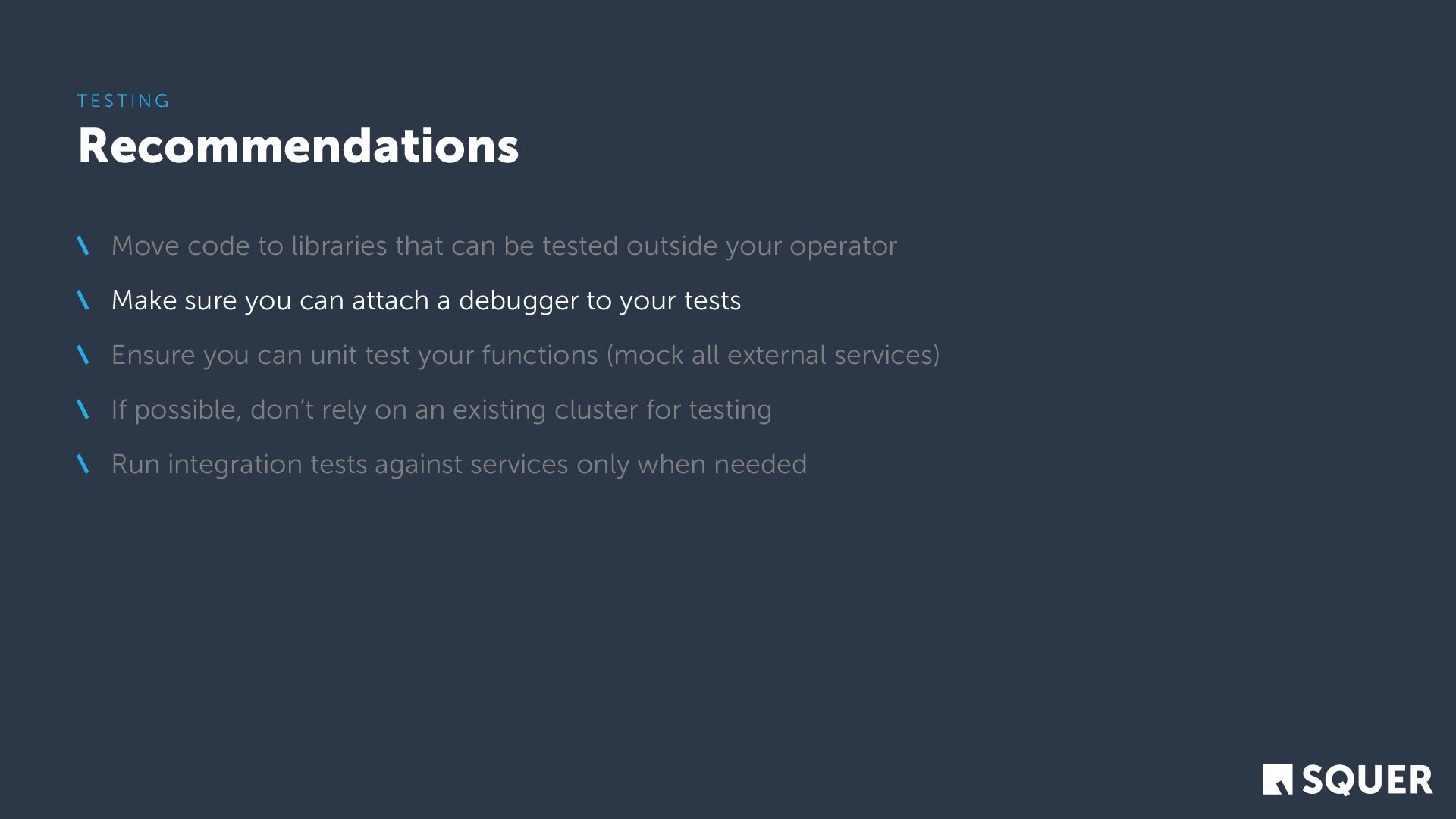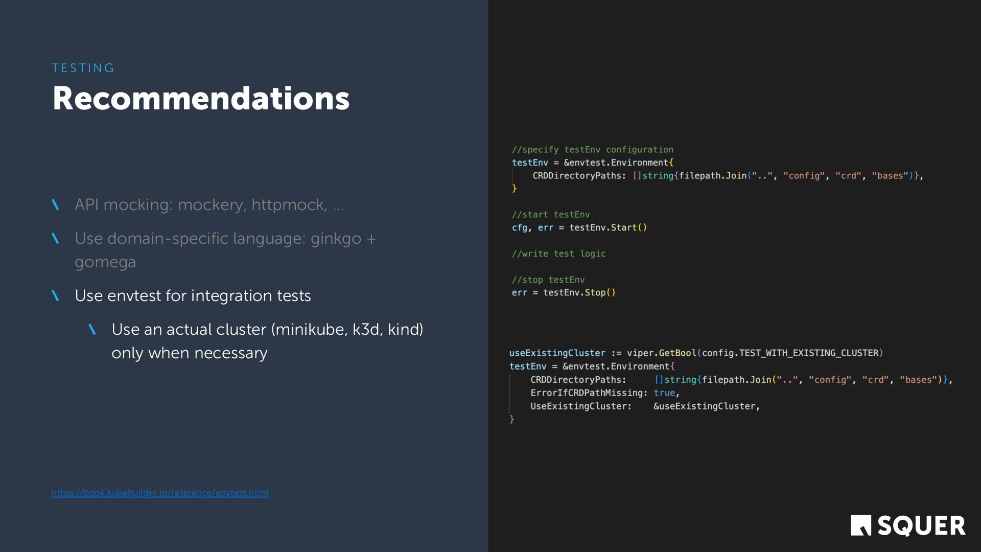 We often hear people talking about Kubernetes (K8s) operators and if you ever used K8s you surely have deployed at least one. However, when the time comes to implement your first operator, it is sometimes challenging to keep in mind what matters and ensure the code we write can be testable, especially when it has to interact with multiple external services.