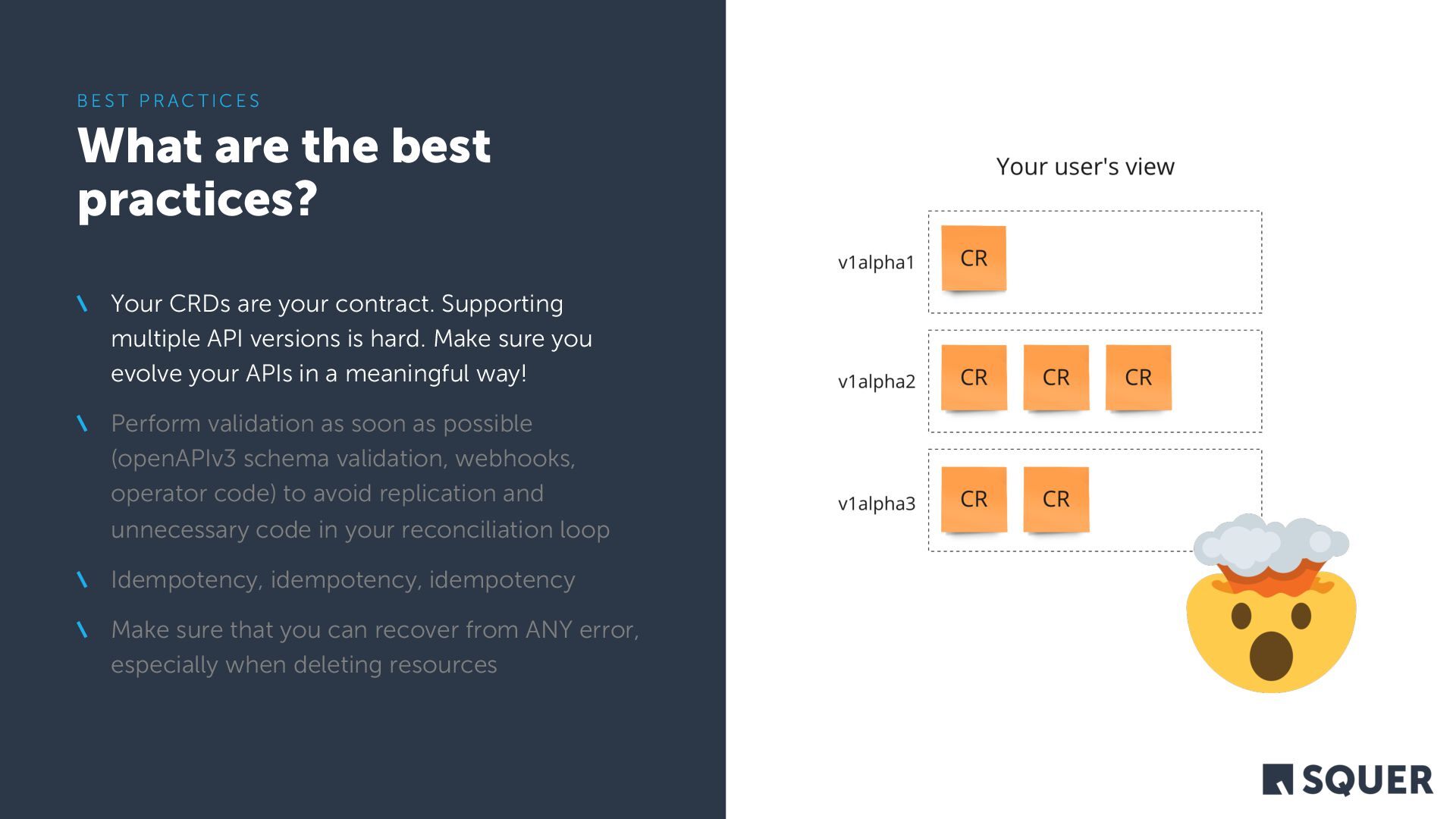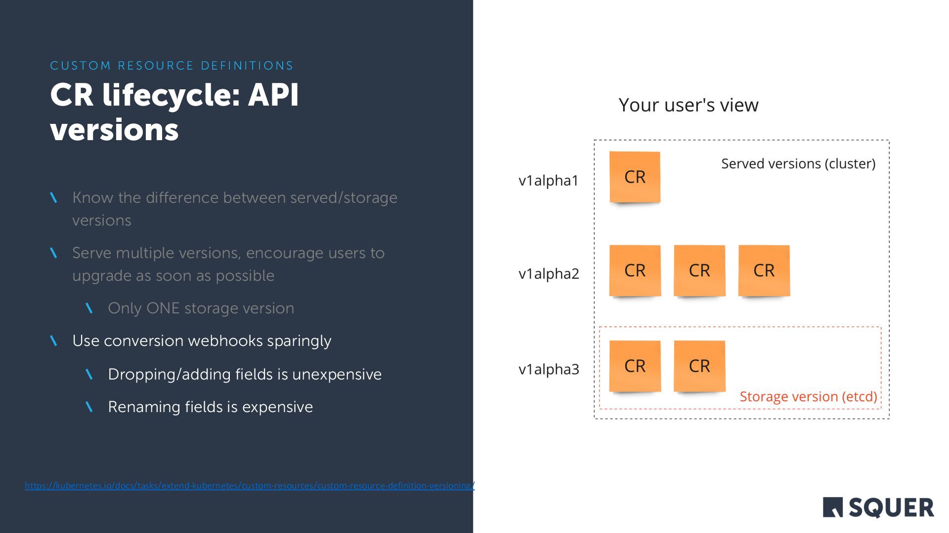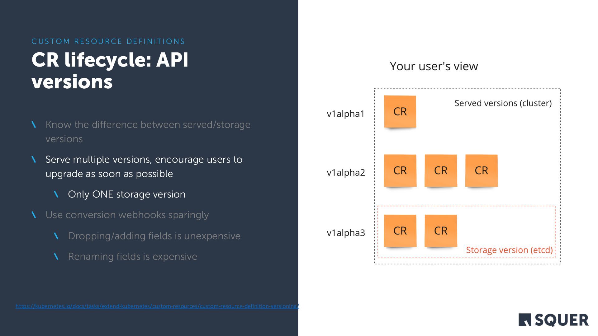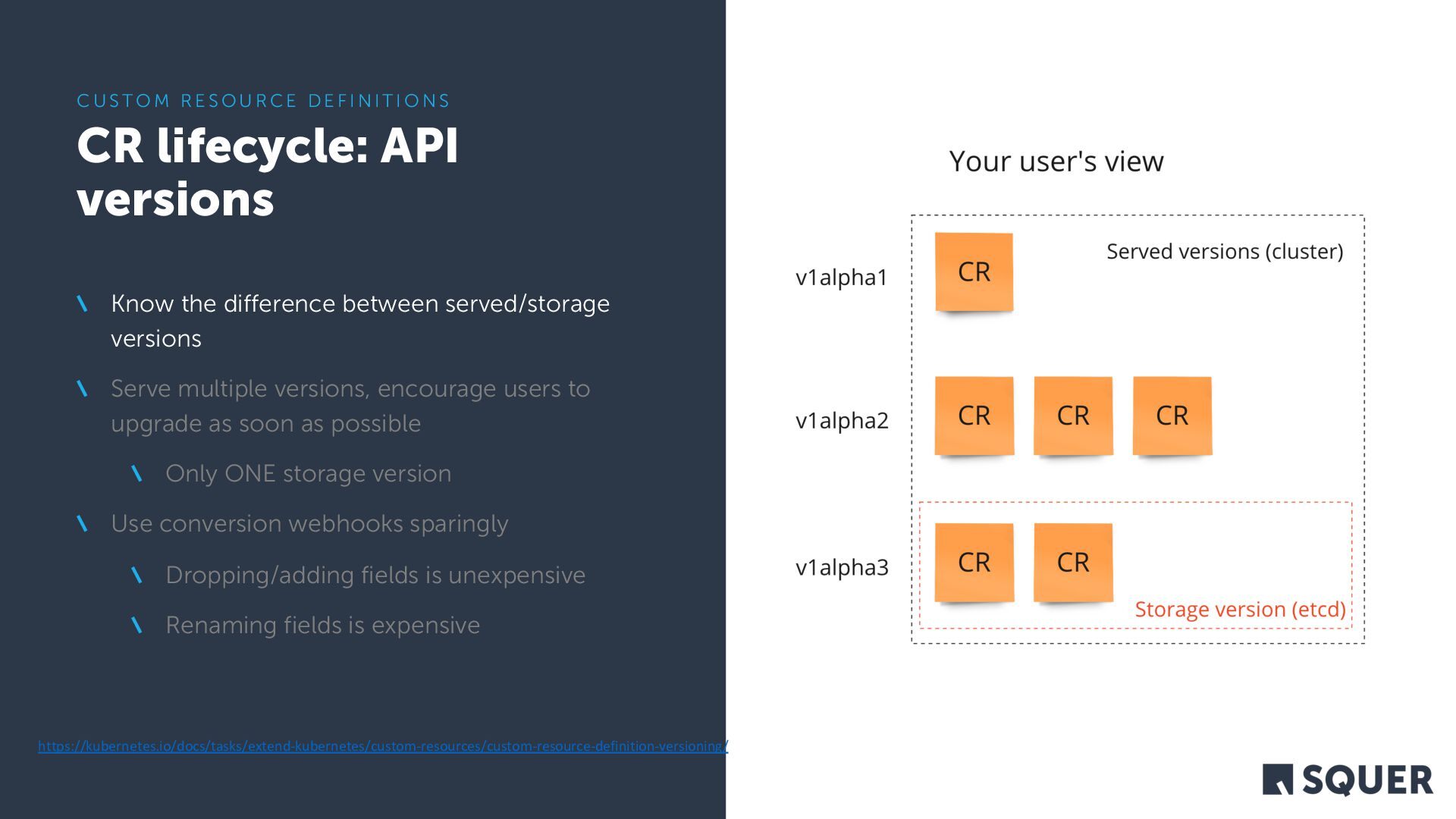 * Custom Resource Definitions API versioning and how to upgrade and support multiple versions
