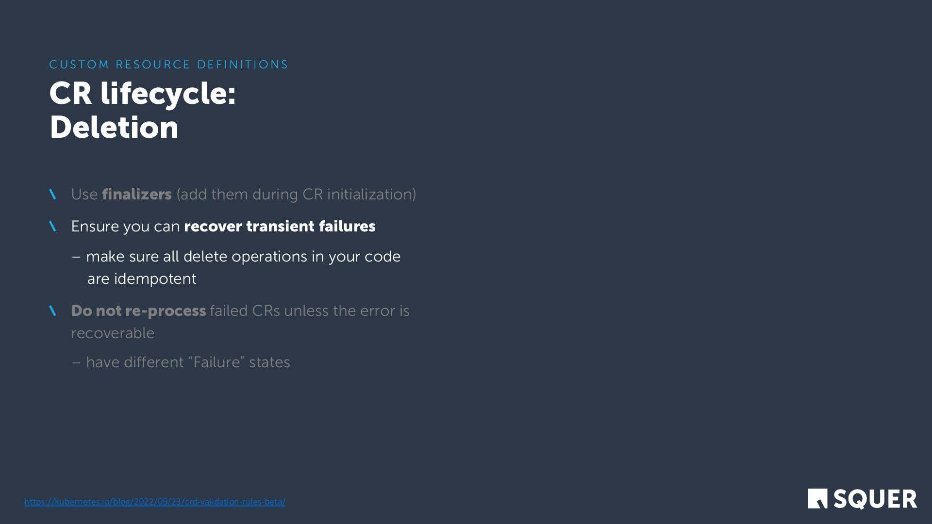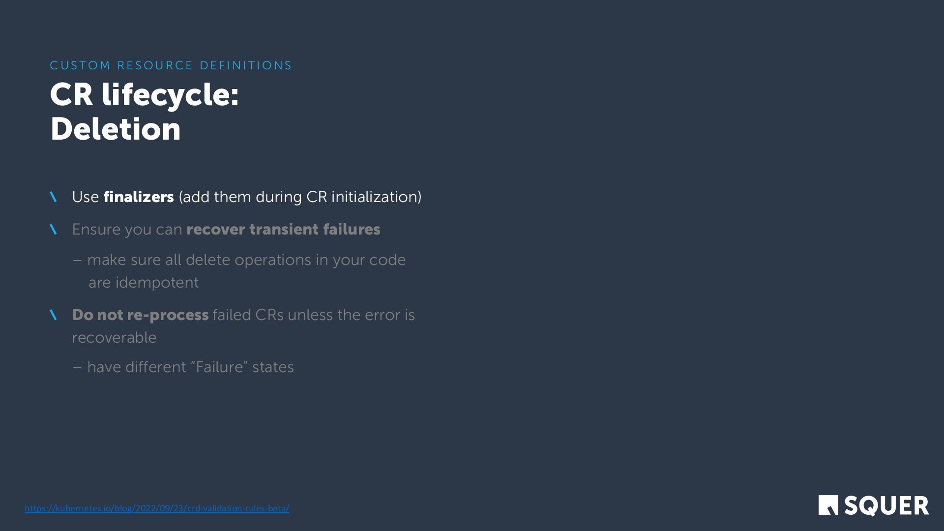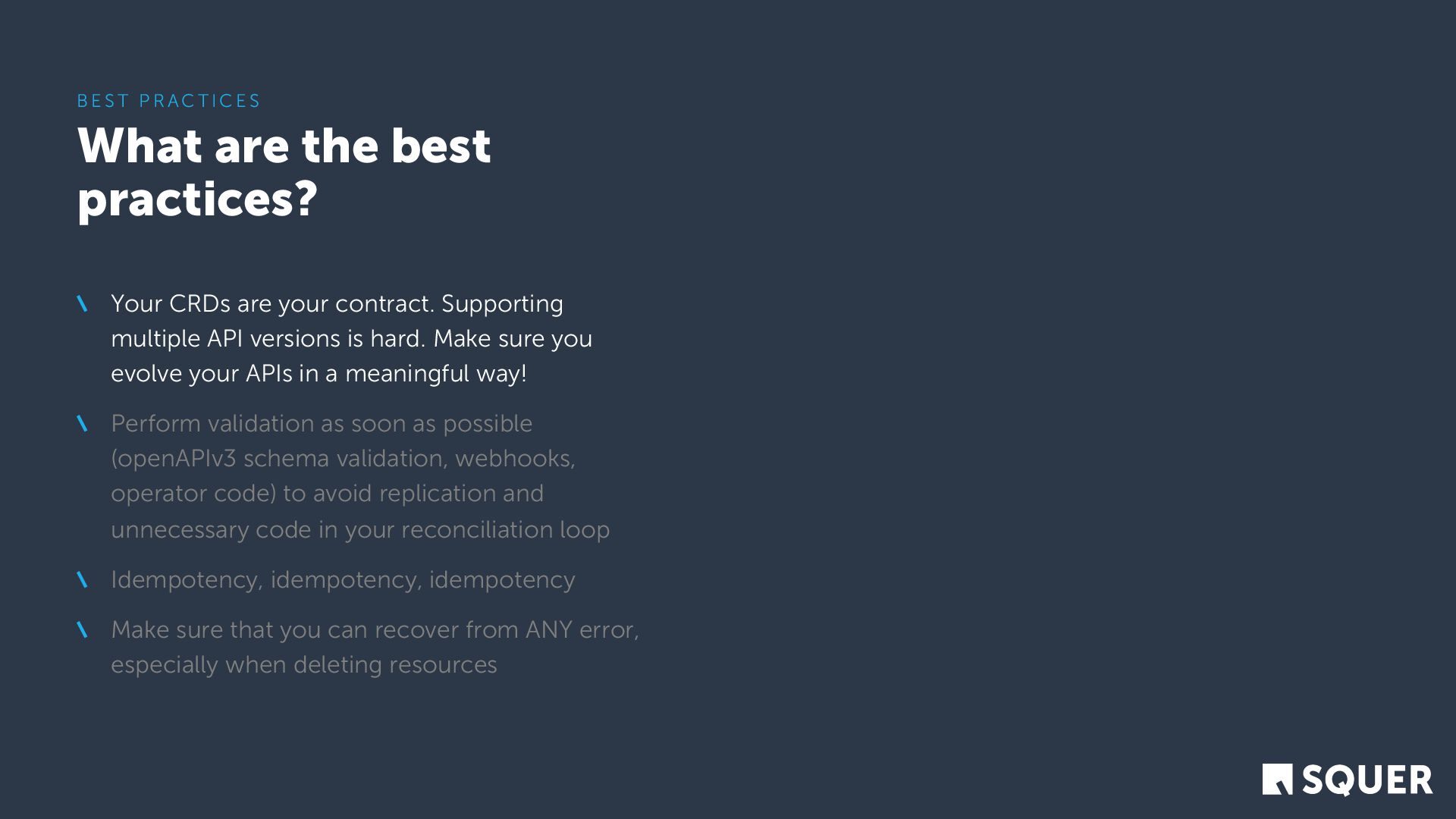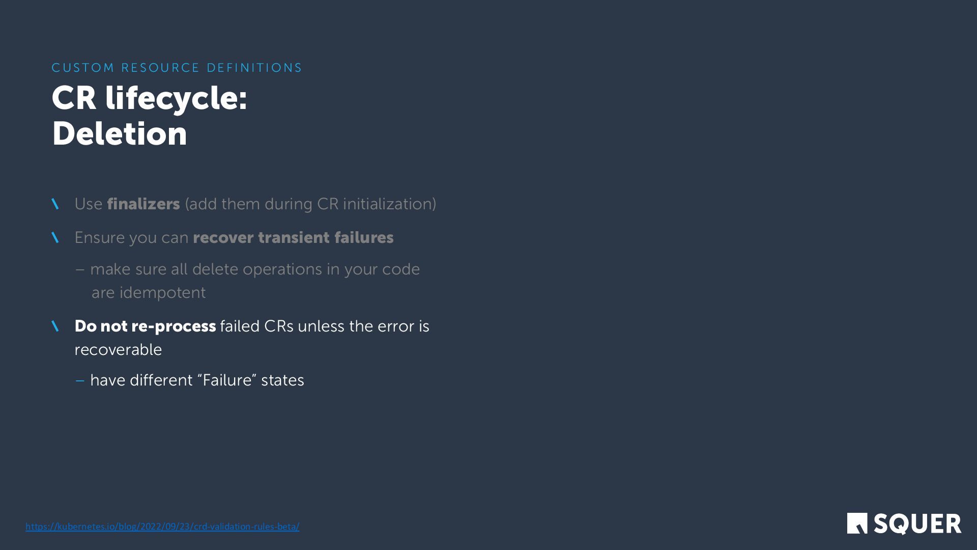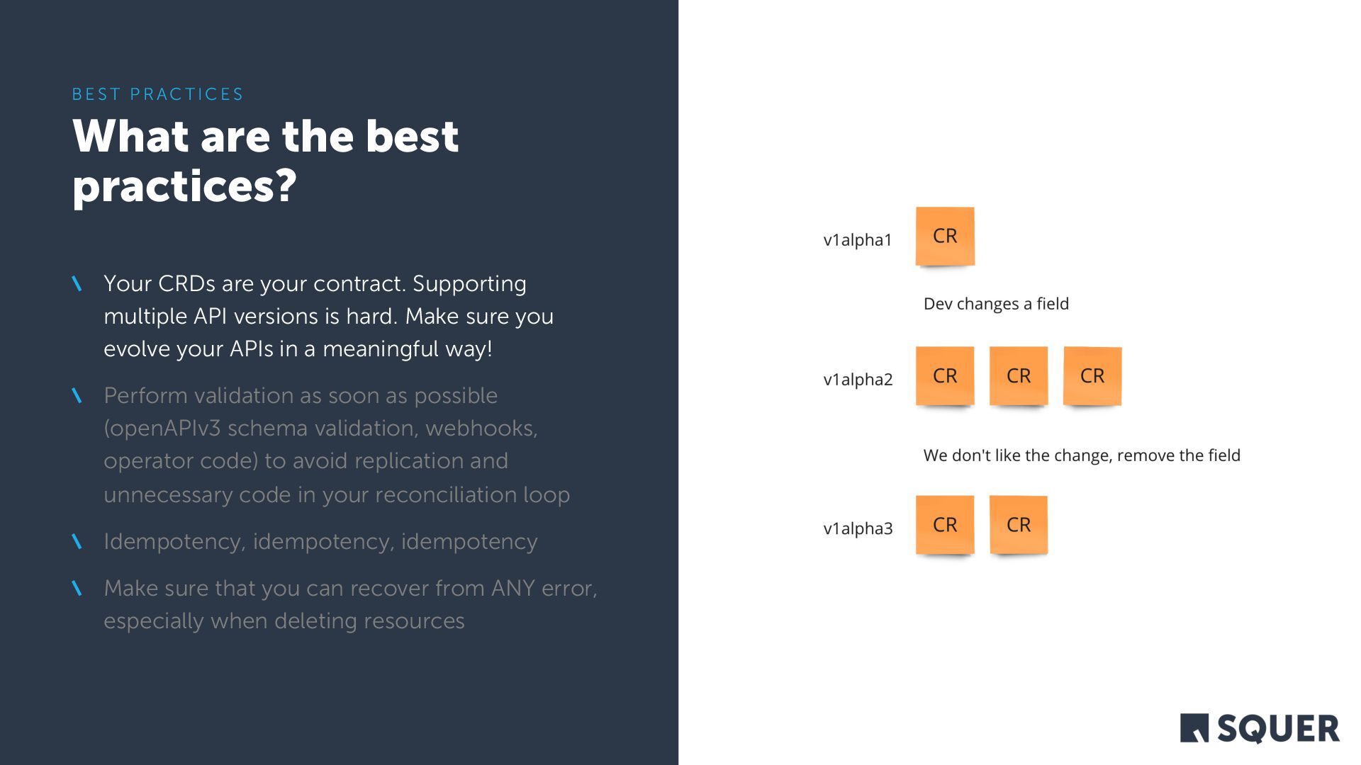 * Custom Resource Definitions API versioning and how to upgrade and support multiple versions