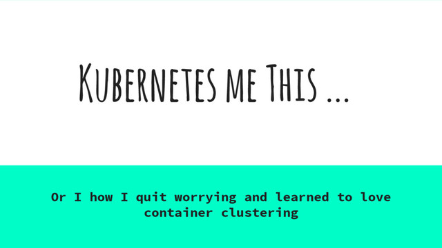 about: ◦ Why Kubernetes exists. ◦ How Kubernetes works. ◦ The challenges of container orchestration at scale. ◦ How you can use Kubernetes. • Most importantly, I want you guys and gals to have a good time with some like minded folks and learn something new in a fun way.