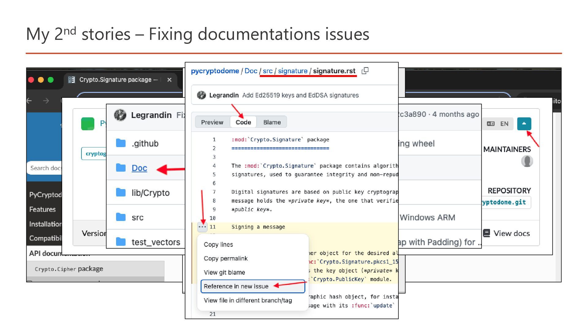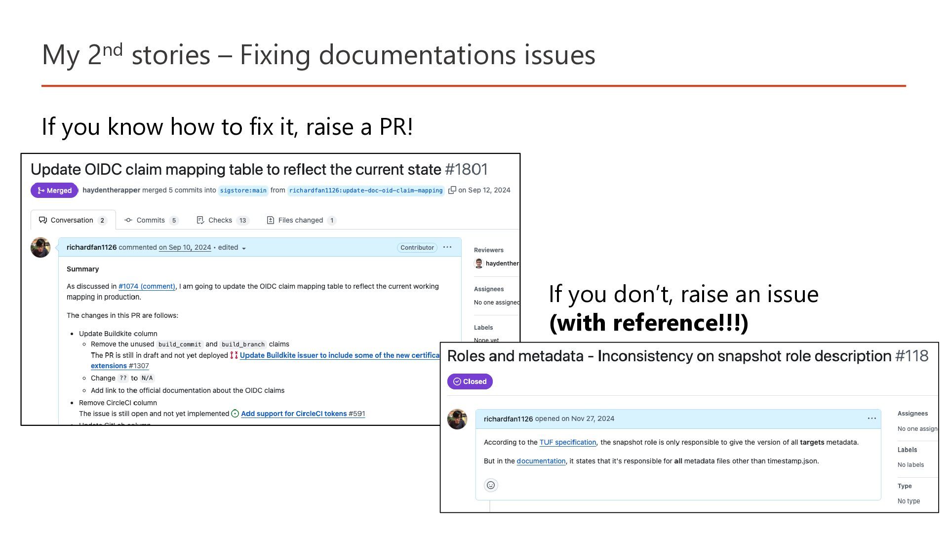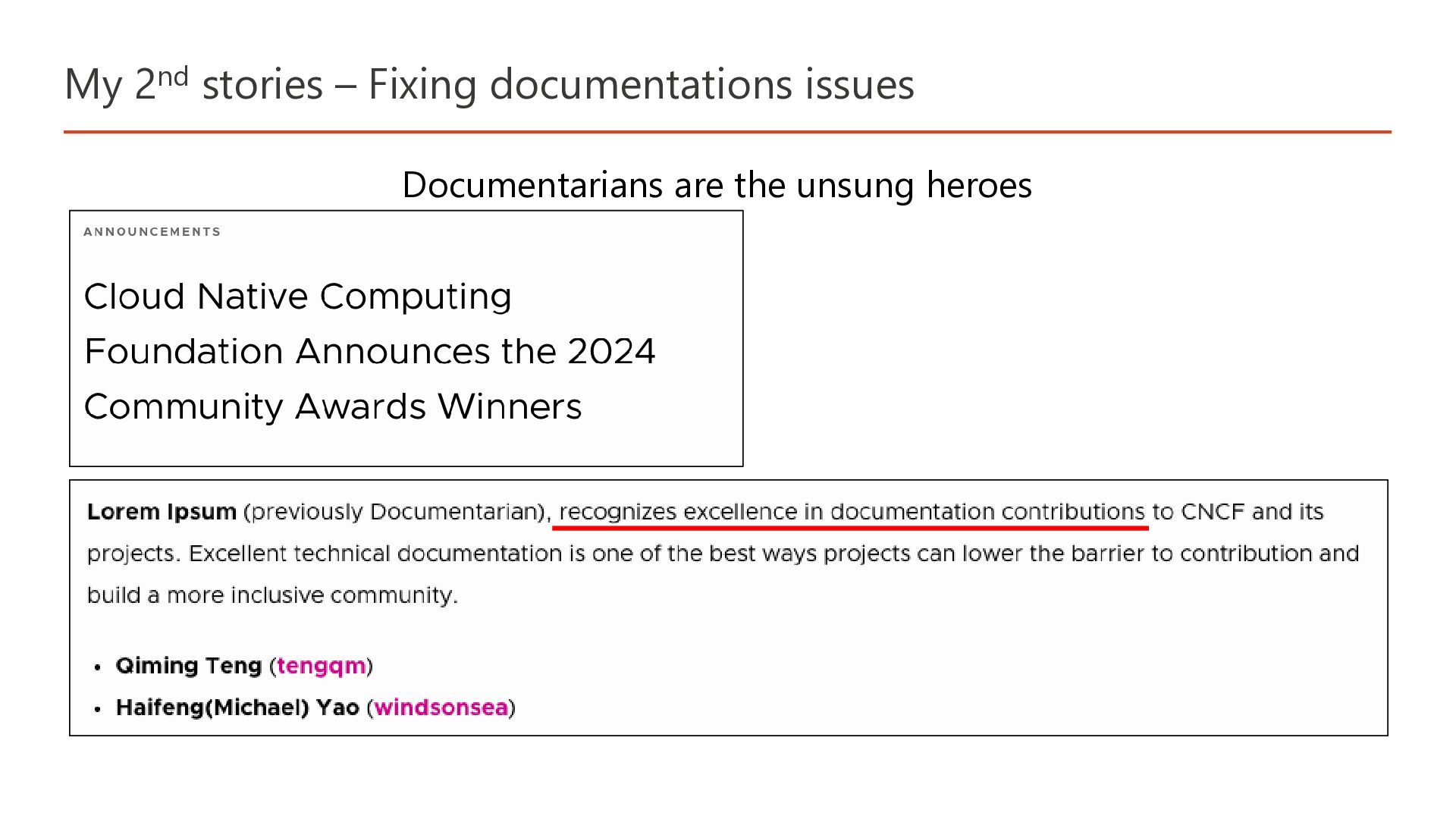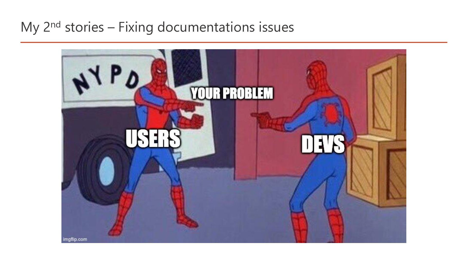 My 2nd stories – Fixing documentations issues Documentarians are the