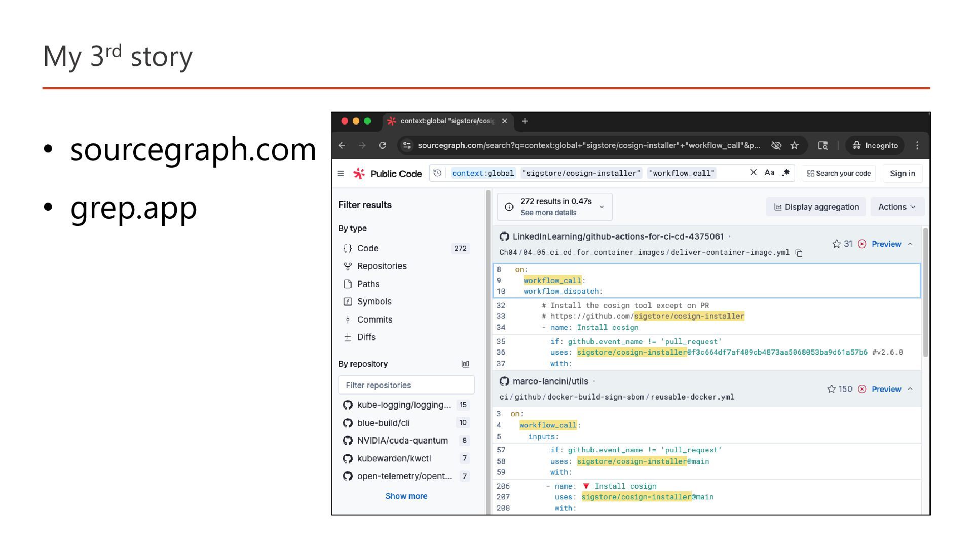 My 3rd story • sourcegraph.com • grep.app