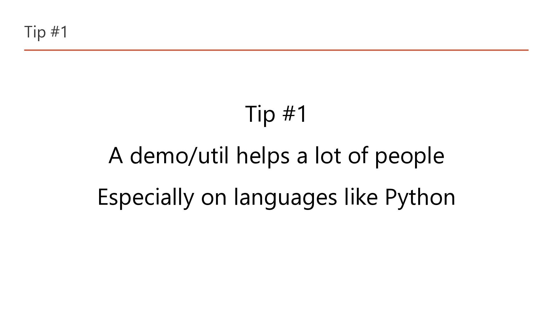 Tip #1 Tip #1 A demo/util helps a lot of