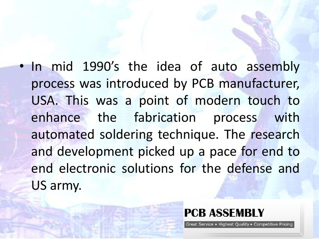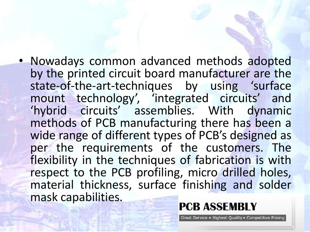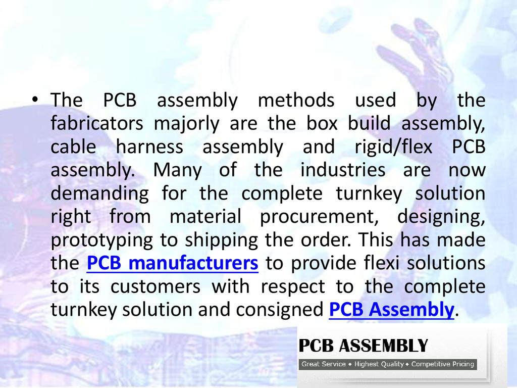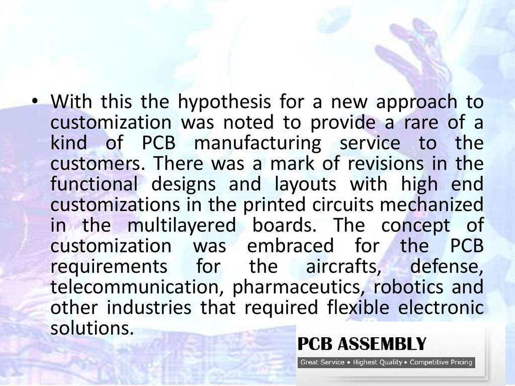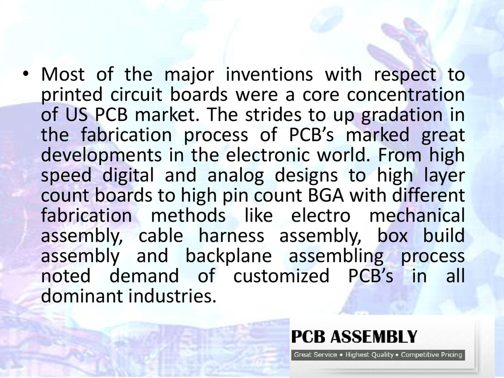 PCB has become a base element for any type of fabrication processes adopted in all the dominant industries across the globe. With changing trends and fades the challenges for PCB manufacturers has been increasing to provide highly customized end to end electronic solutions to its customer base. More Information visit http://4pcbassembly.com