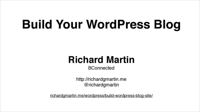 Build Your WordPress Blog Richard Martin! BConnected! ! http://richardgmartin.me! @richardgmartin!