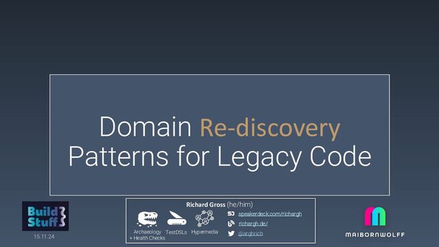 In this talk we'll delve into various domain re-discovery patterns that help in identifying and reconstructing the domain model that the legacy code represents. These patterns go beyond merely deciphering the code's functionality; rather, they provide strategies to comprehend the underlying concepts, behaviors, and relationships in the domain.