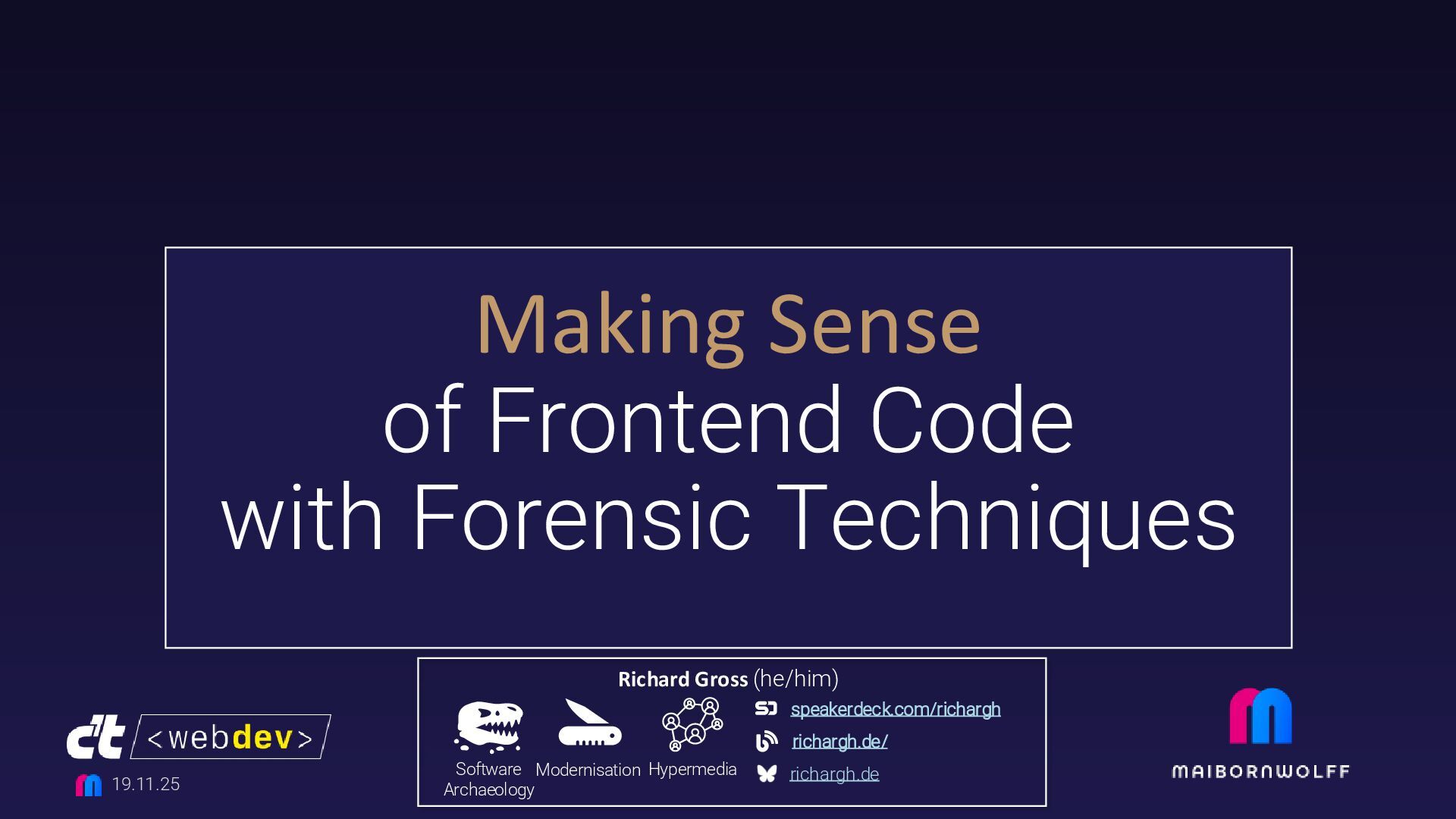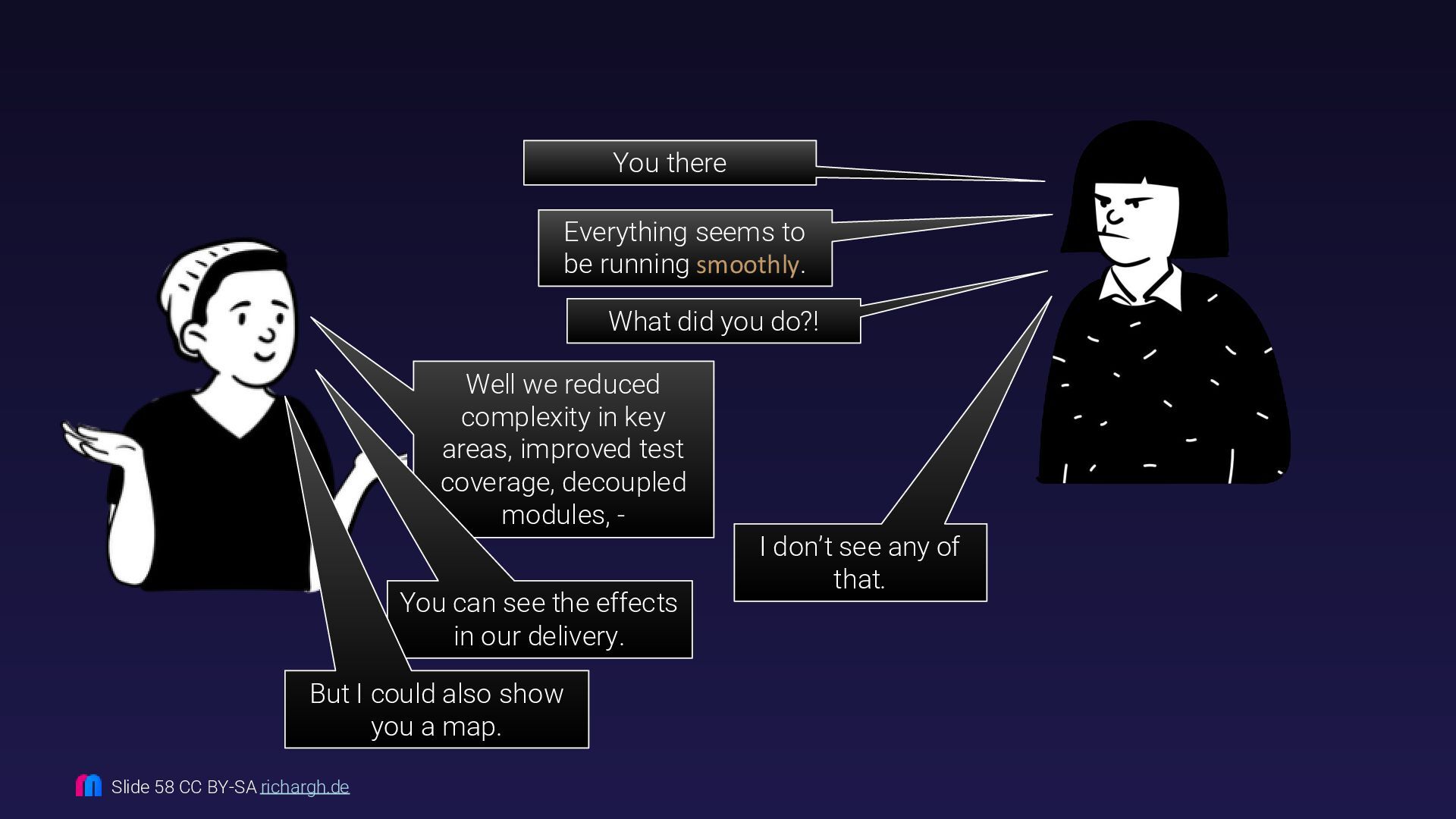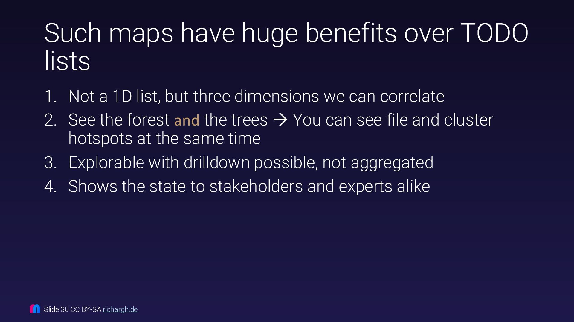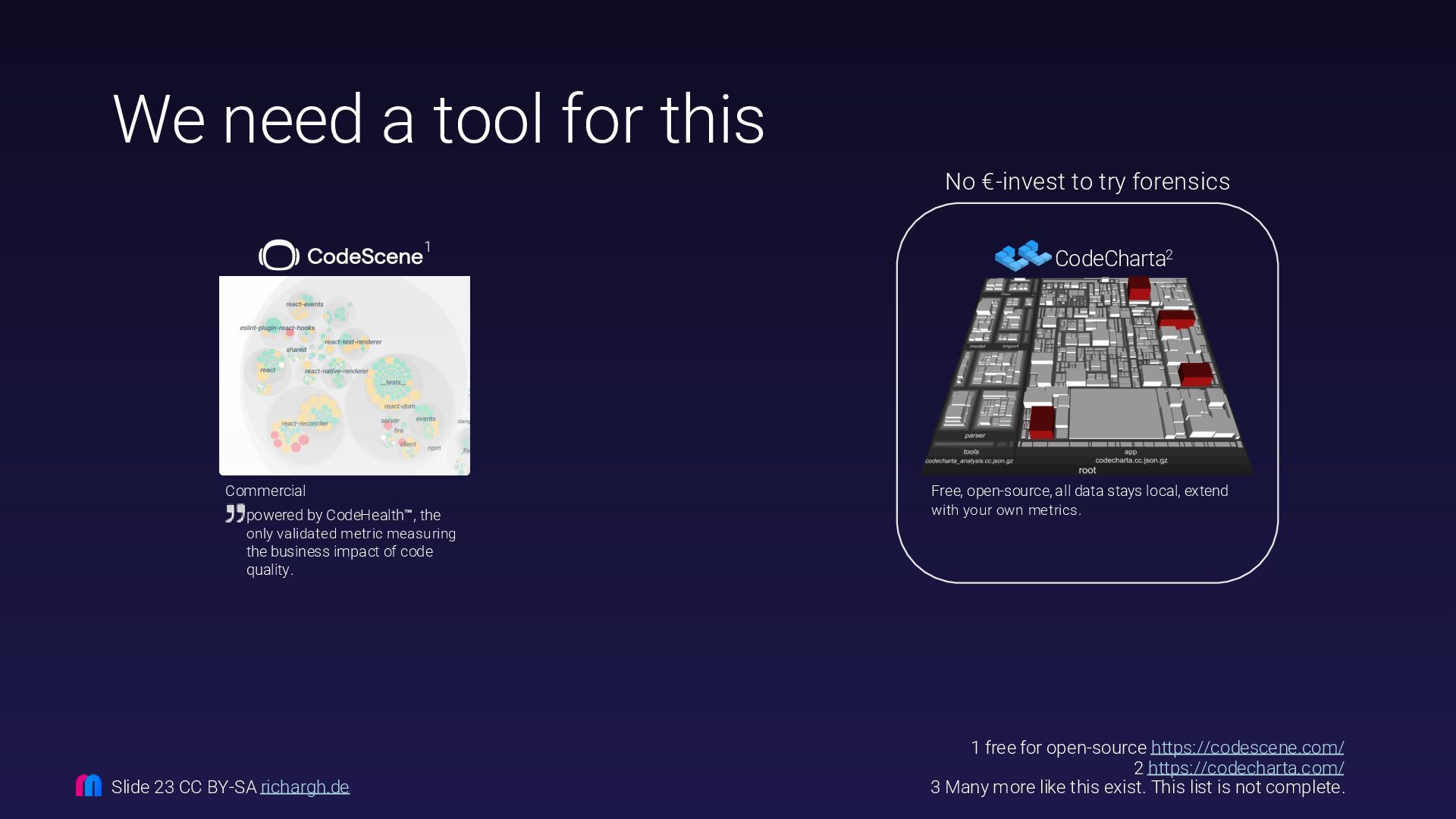 In this talk, we will therefore look at the forensic techniques and tools we can use to make the quality of code and architecture tangible. The tools extract quantitative information from code, architecture, git history, and the technique qualify these results. Put together we have accurate picture where we stand. This also support us in having a dialog with non-technical stakeholders at eye level about the required quality.