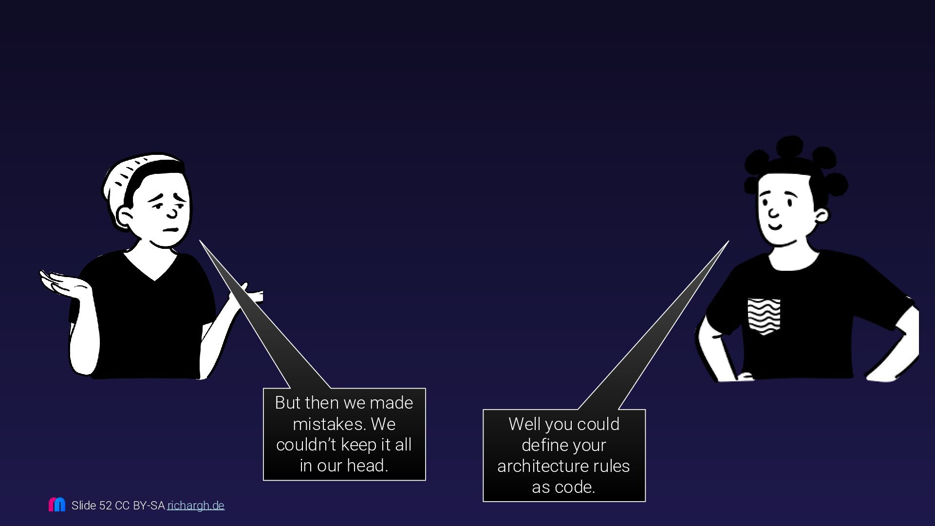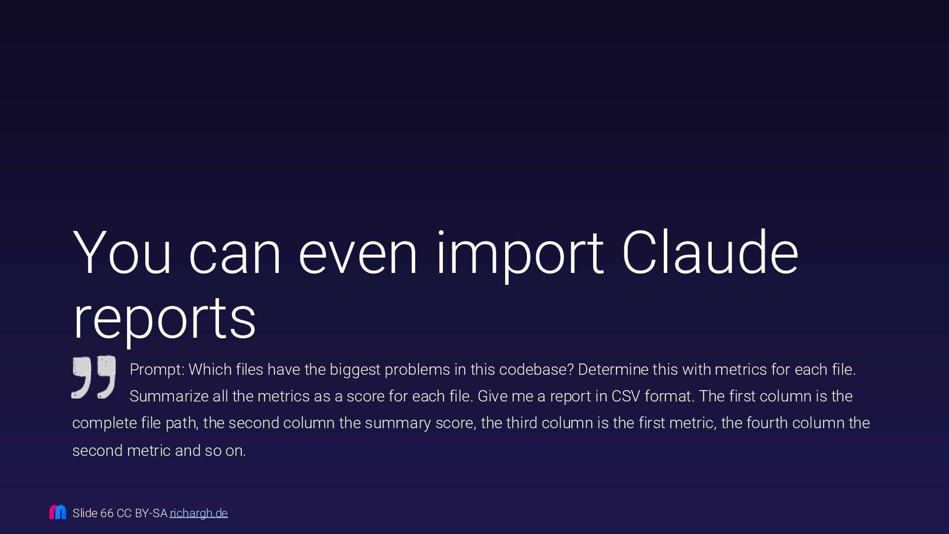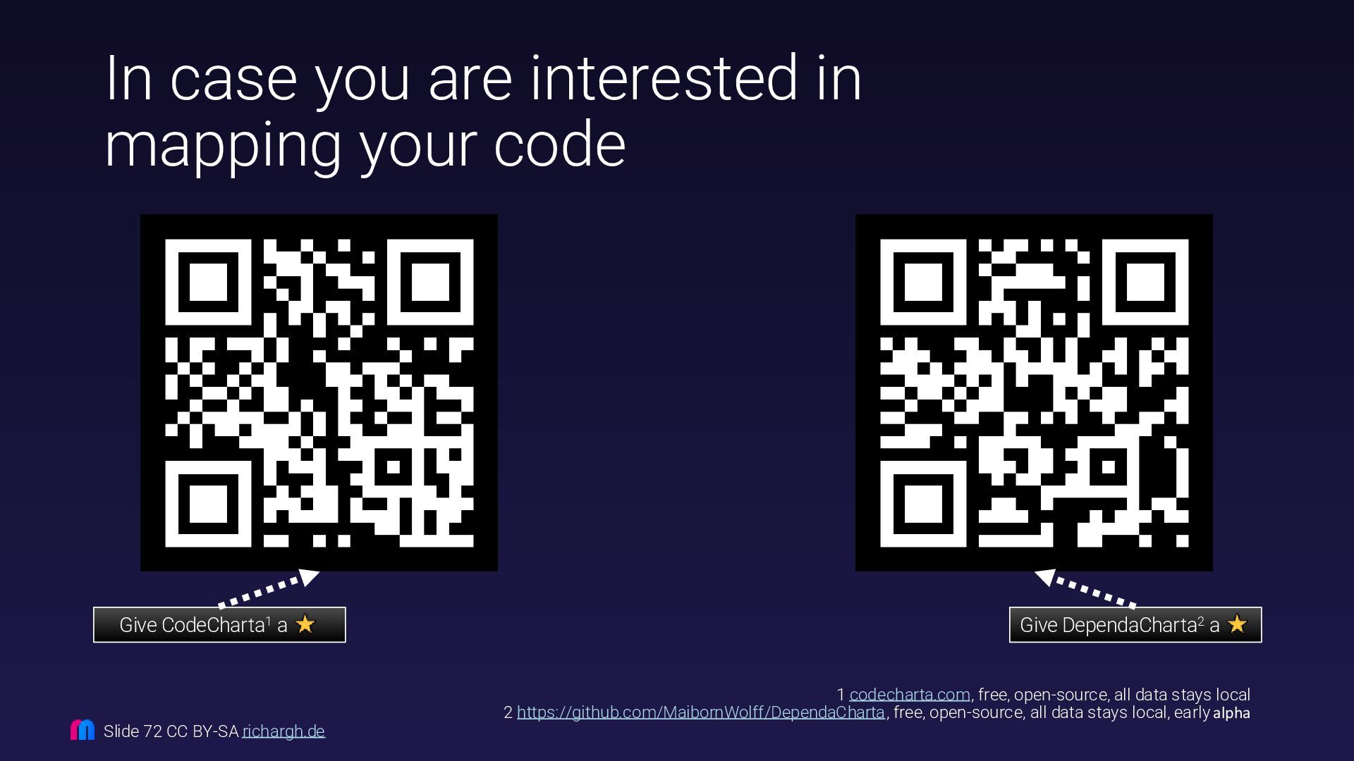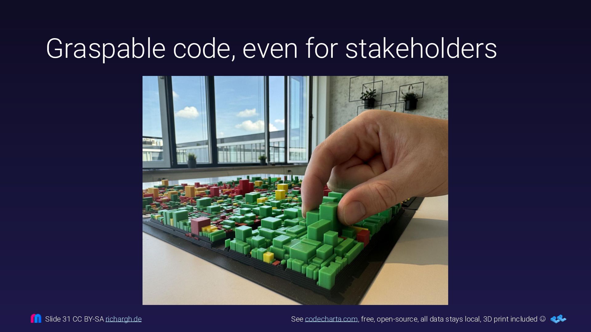 In projects with hundreds of thousands of lines, it is easy to lose track of code, architecture and quality. Are we still on the right track, are we blocking ourselves with internal dependencies, or are we already stuck? Software is immaterial, we cannot see how it is doing.