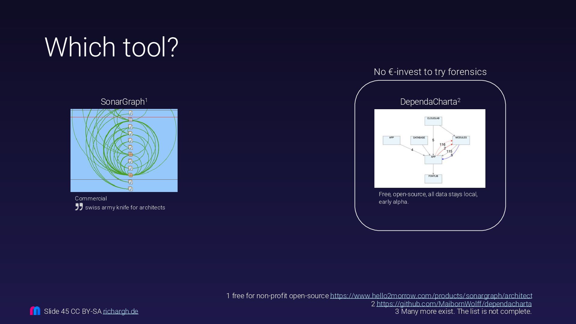 The forensic tools include the open-source tool CodeCharta and DependaCharta.