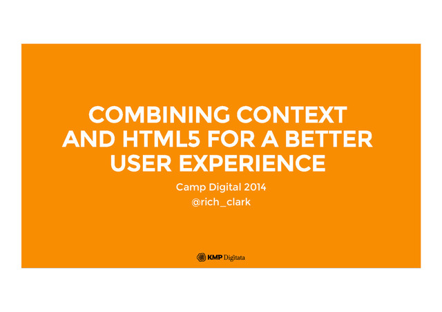 A talk from Camp Digital 2014 (http://campdigital.wearesigma.com) on how we can use HTML5 APIs to determine more about a users context and in turn provide a better user experience for them.