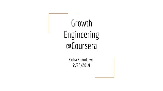 combination of FE, BE and mobile engineers. Most Growth teams are organized as Agile teams. 2. On FE a. HTML, CSS, Javascript b. ReactJS, Angular c. Node.js (Nice to have) 3. On BE a. Java, Python, Ruby on Rails, Scala (@Coursera) b. Databases - MySQL, NoSQL (C*, MongoDB) c. Cloud Computing Technologies (AWS, Google Cloud, etc) d. Building microservices 4. Mobile a. iOS or Android programming