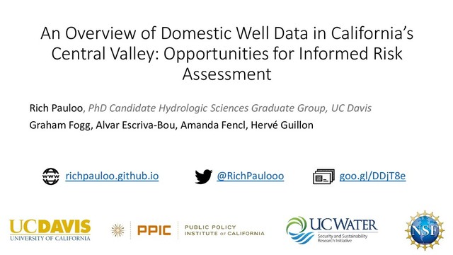 The stated objective of the meeting was: "to explore previously completed work identifying the location, extent, and water quality of domestic wells in California. The State has been tasked with performing a Needs Assessment to determine costs associated with providing potential remedies for contaminated domestic wells under the Human Right to Water."