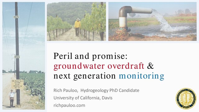 your groundwater bank account), is highly undesirable. • Extreme consequences of overdraft (e.g., land subsidence, arsenic leeching, well failure) are hard to undo. • Data and models can provide risk mitigation and decision support. • Data from next generation monitoring networks are providing real- time risk mitigation and decision support TODAY in many basins around California.