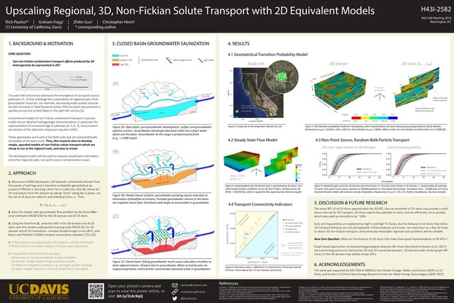 Physical simulation of groundwater flow and contaminant transport is computationally expensive, and intractable at regional aquifer scales, where nonpoint source contamination (e.g., salinity, nitrates) threaten basin-wide groundwater quality. In this research, we develop methods to efficiently upscale 3D, non-Fickian transport in heterogeneous porous media with 2D equivalent models, thus reducing computational time and preserving non-Fickian transport characteristics (e.g., early arrival and late tailing in the breakthrough curve).