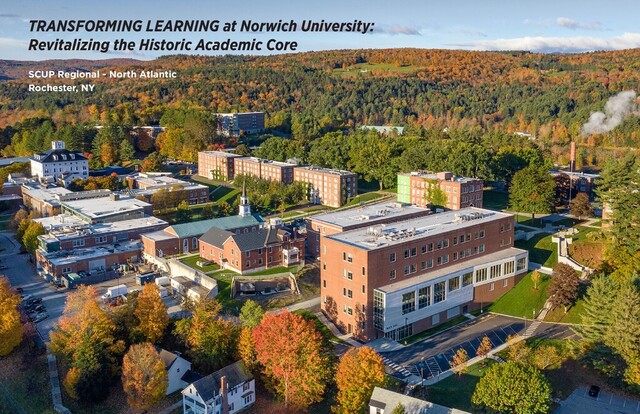 Norwich University has fundamentally transformed its academic core, updating over 45% of its teaching space on campus. Stitched together by newly conceived landscape solutions, three renovations and one new building have reinvigorated central campus. All campuses face aging core academic facilities, often housed in important historic buildings. Supporting current program needs without compromising original intent requires thoughtful and creative approaches to revitalizing these structures. Norwich reimagined its central campus for contemporary research, teaching, and learning without compromising the integrity of its historic structures.