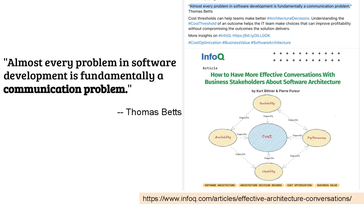 https://www.infoq.com/articles/effective-architecture-conversations/ "Almost every problem in software development is fundamentally a