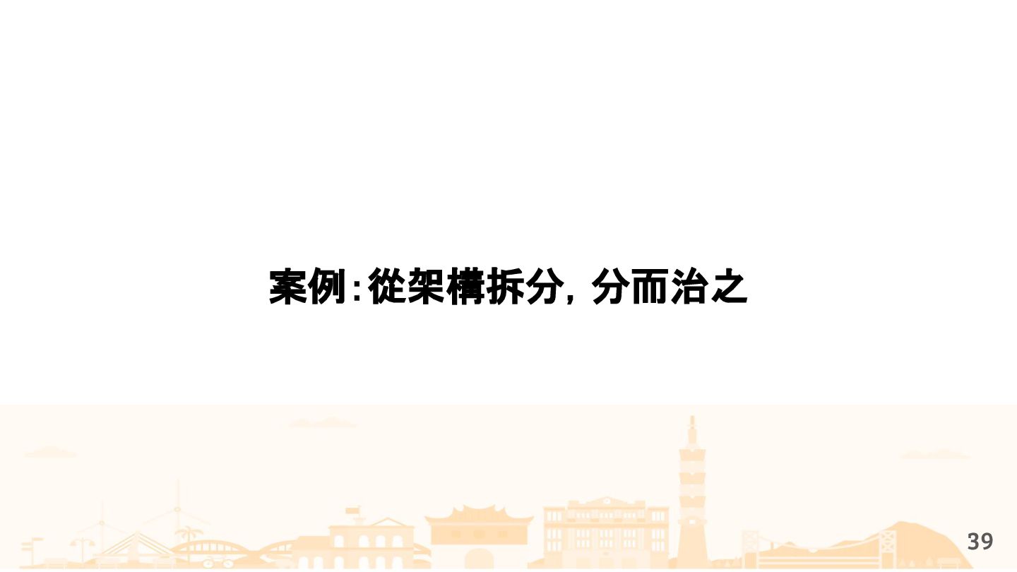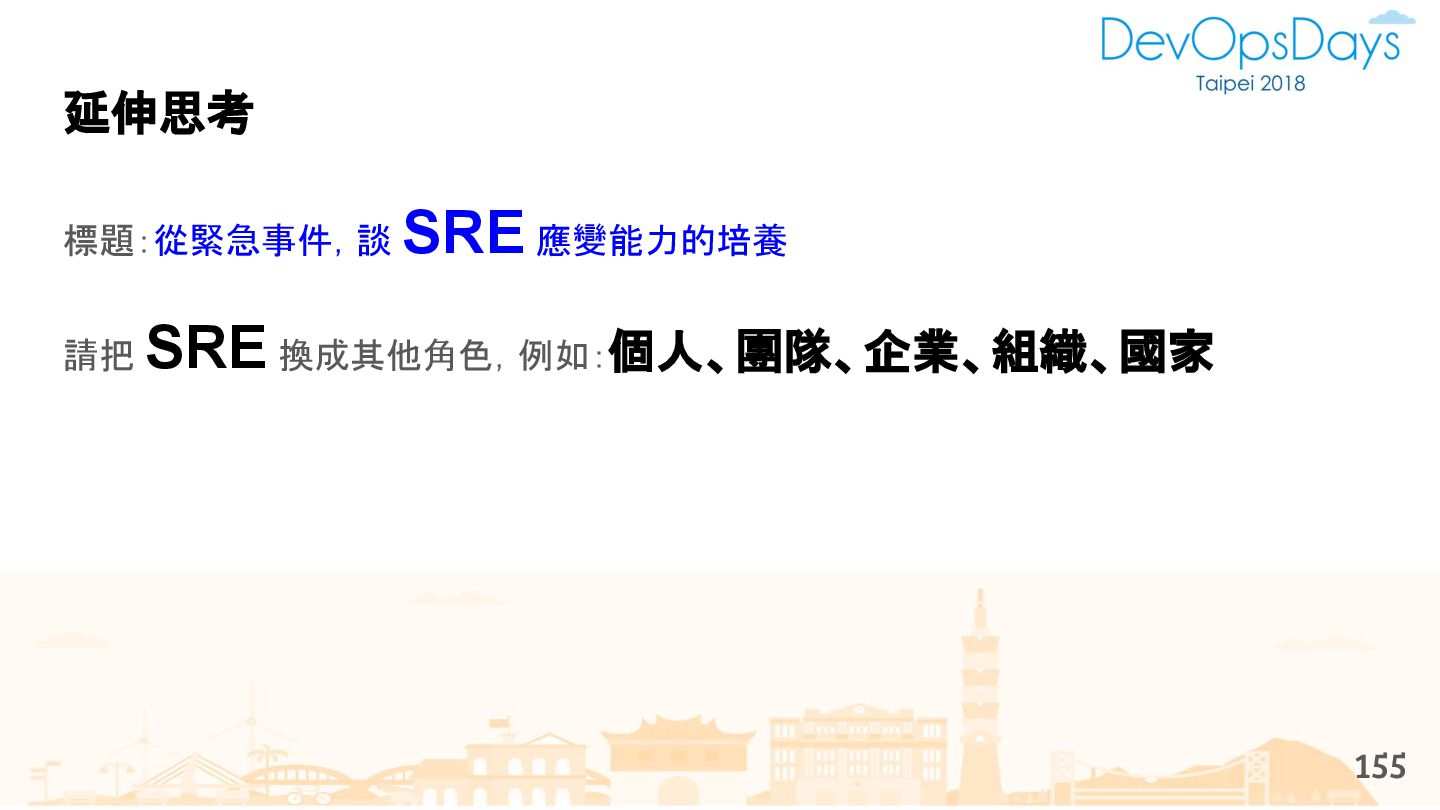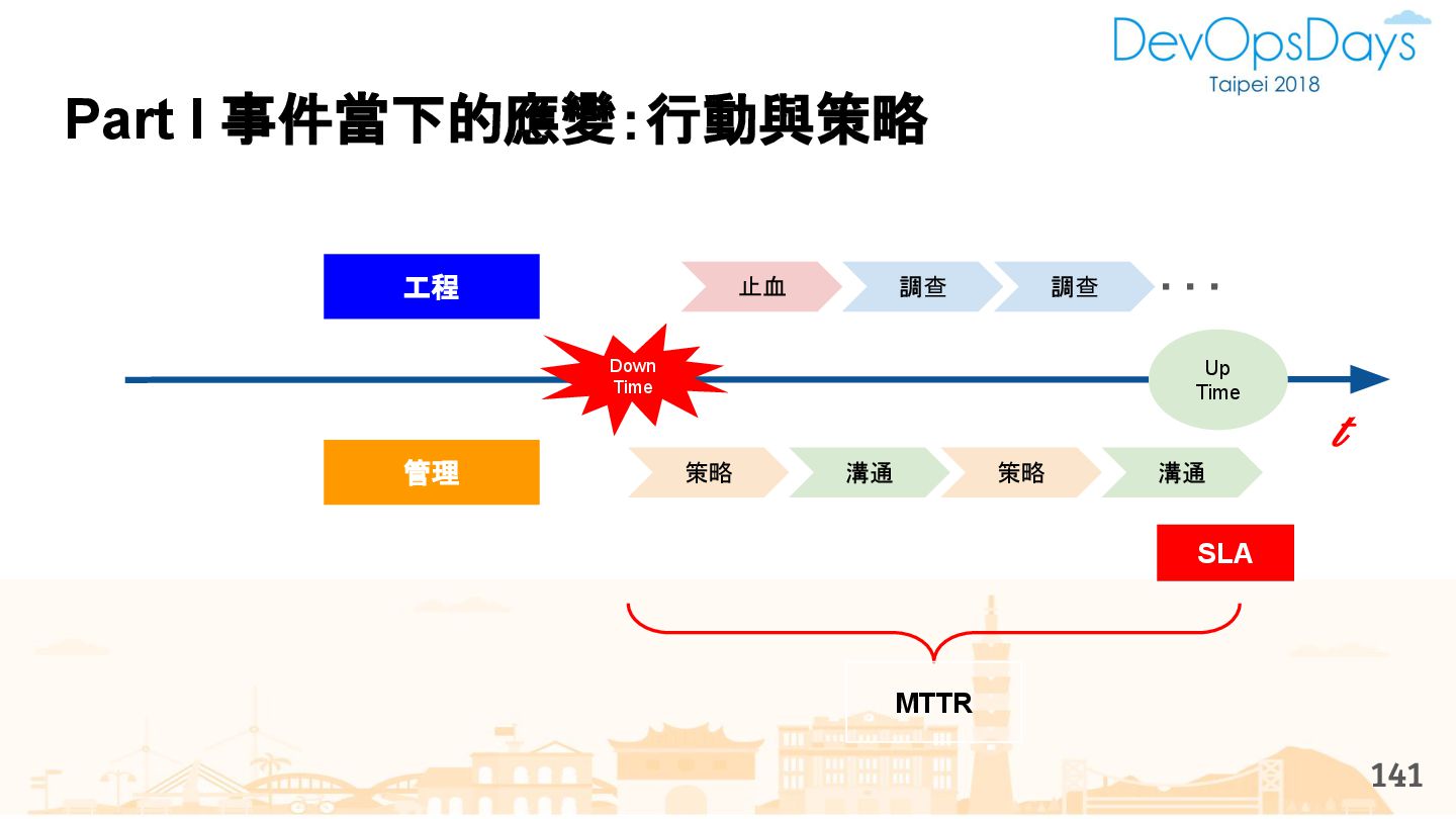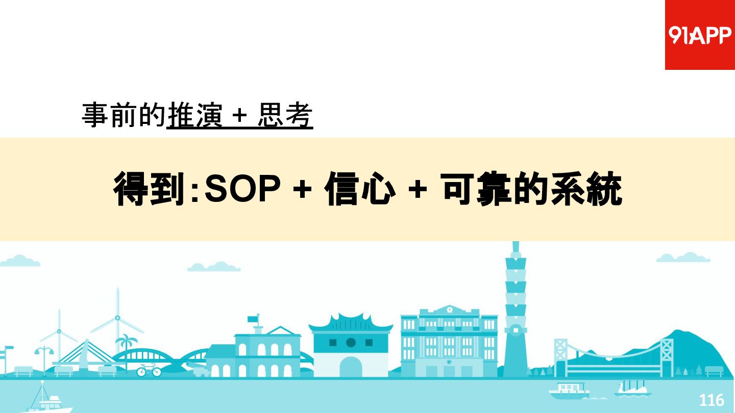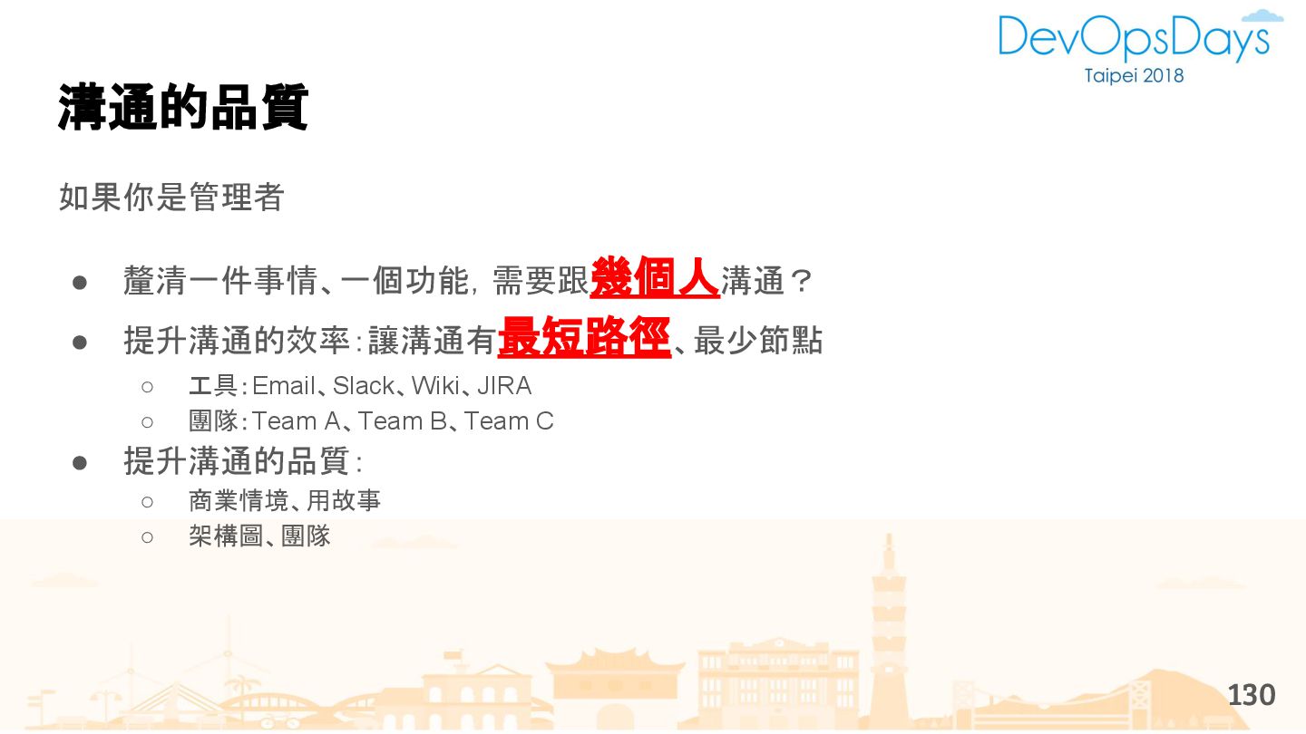 從現象,依據架構、指標,找問題點 (Part II) b. rollback, rollback, rollback c. 用最簡單的方法:加資源、移除有問題的節點、增加新節點、蓋防火巷 • 同步 a. 聯繫相關的人:Backend、Frontend、DBA、Networking b. 蒐集現象、指標 30