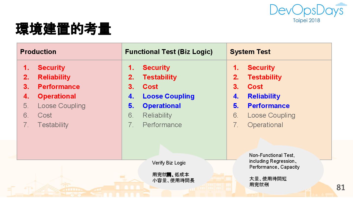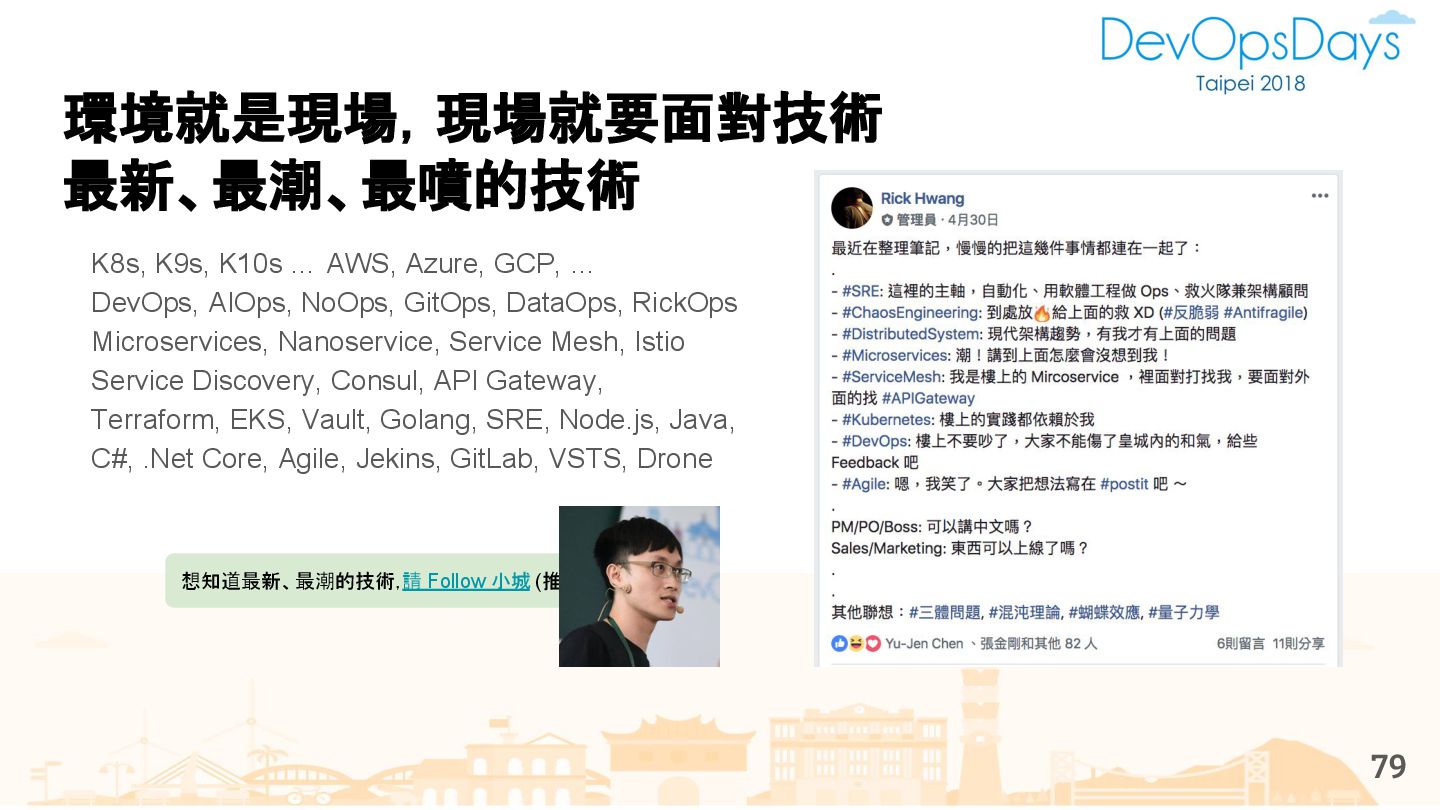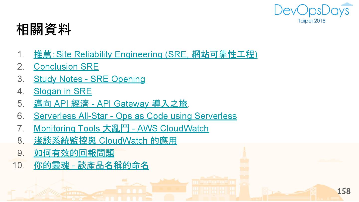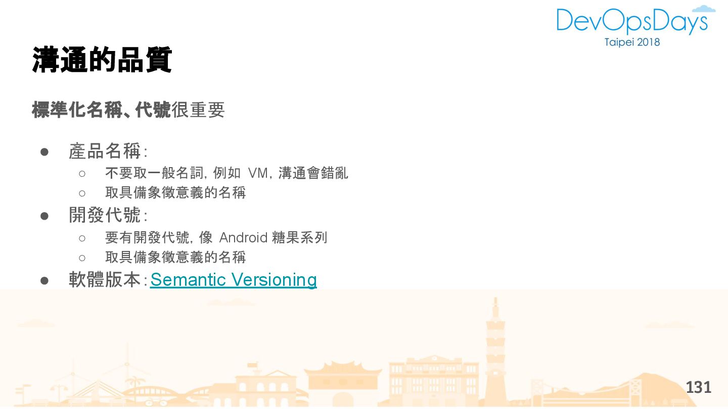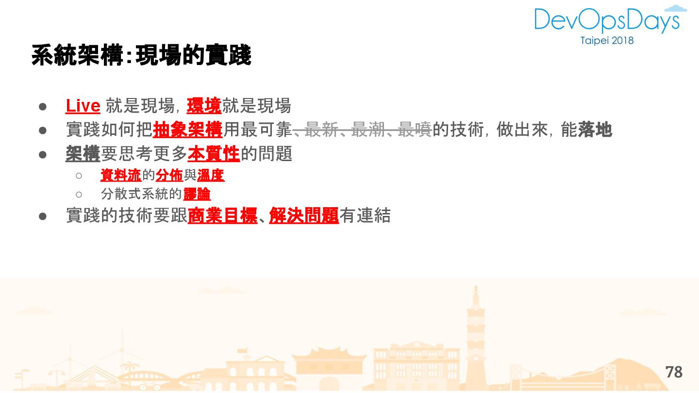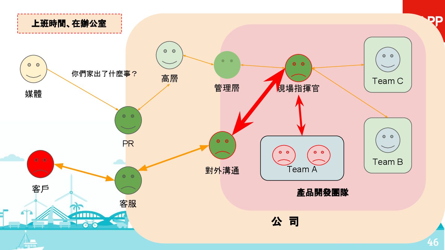 從現象,依據架構、指標,找問題點 (Part II) b. rollback, rollback, rollback c. 用最簡單的方法:加資源、移除有問題的節點、增加新節點、蓋防火巷 • 同步 a. 聯繫相關的人:Backend、Frontend、DBA、Networking b. 蒐集現象、指標 30