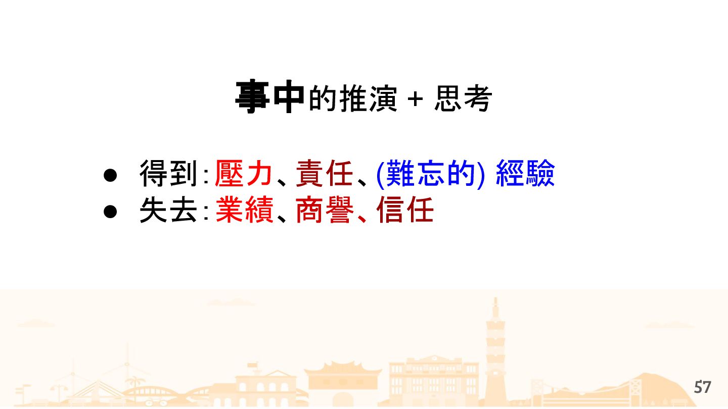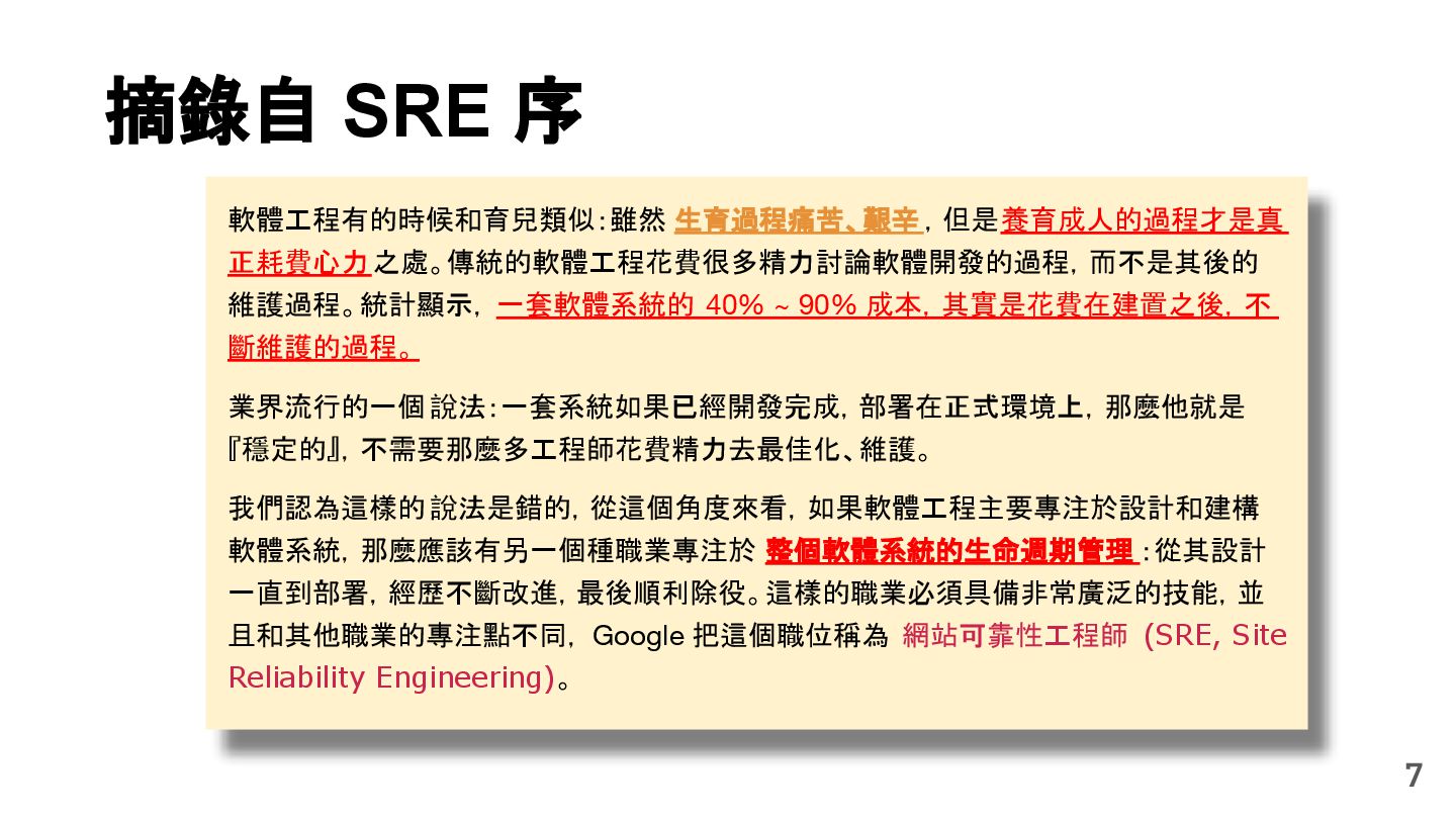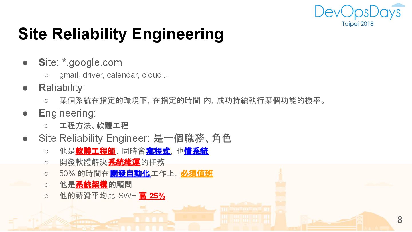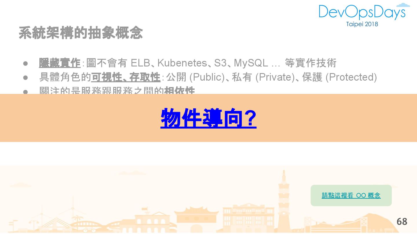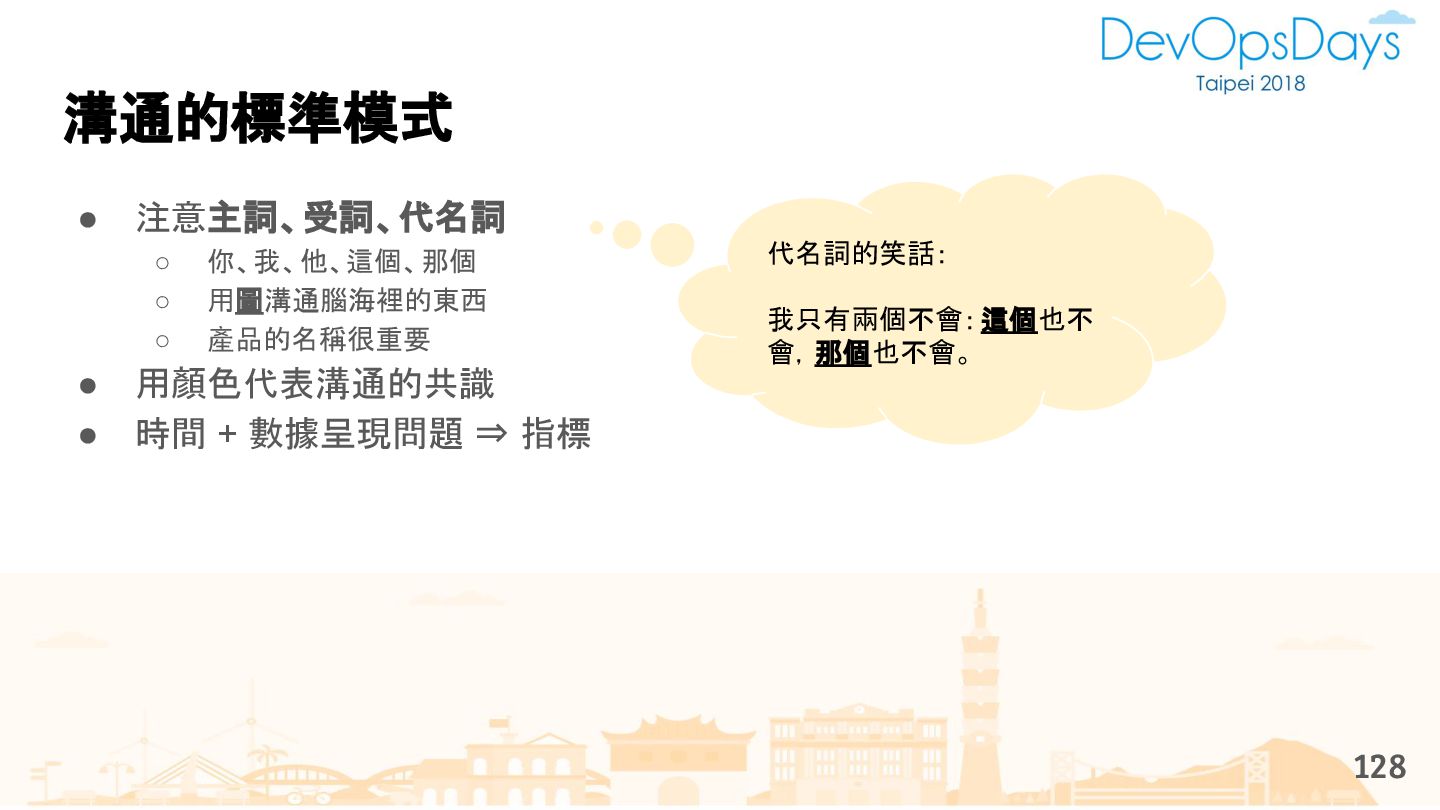 從現象,依據架構、指標,找問題點 (Part II) b. rollback, rollback, rollback c. 用最簡單的方法:加資源、移除有問題的節點、增加新節點、蓋防火巷 • 同步 a. 聯繫相關的人:Backend、Frontend、DBA、Networking b. 蒐集現象、指標 30