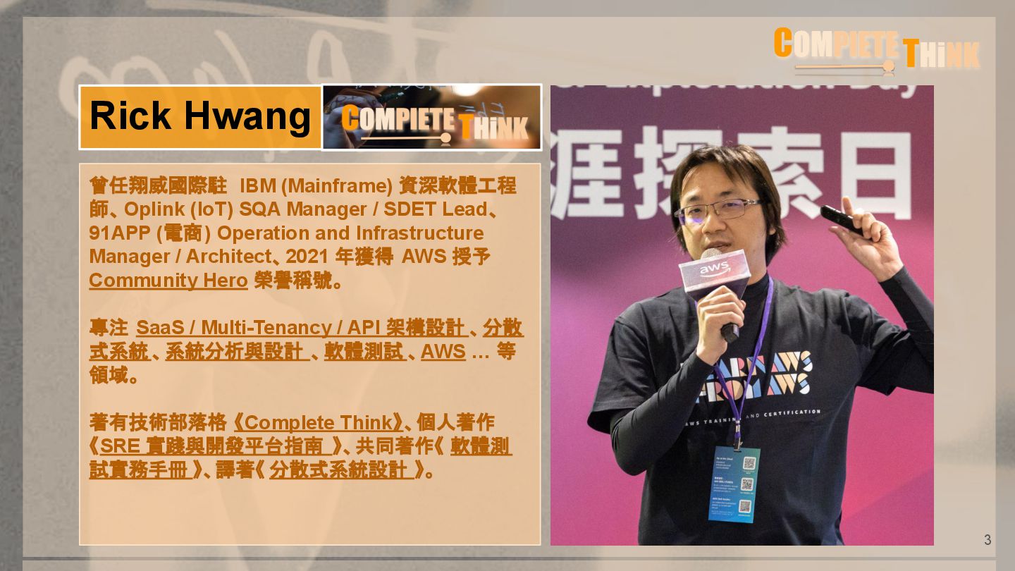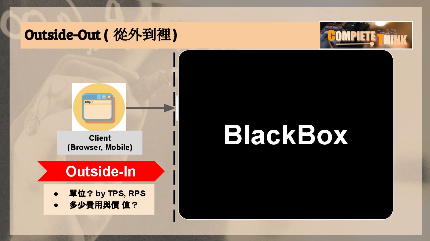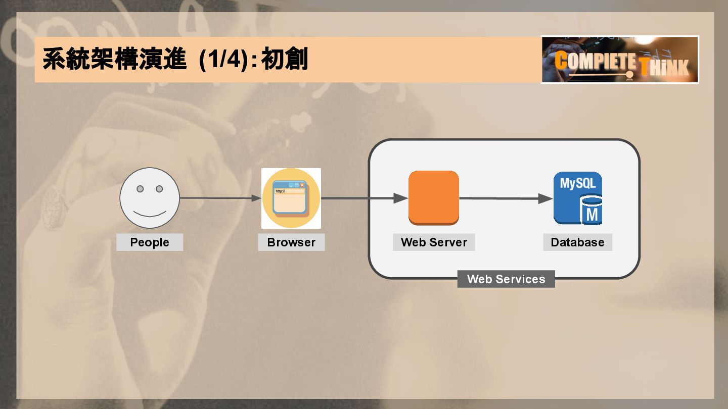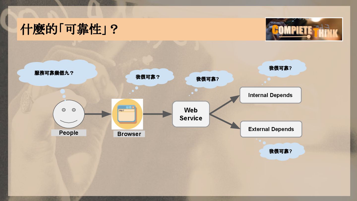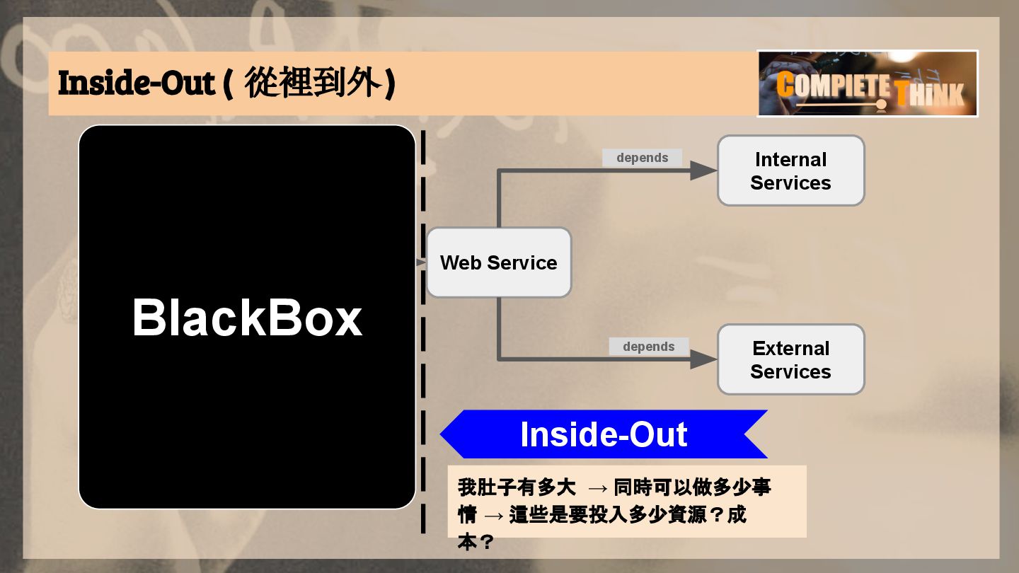 Server (Static) Batch Job (Consumer) Cache Queue Browser People Load Balancer Internal Services Member Service Catalog Service External Services Notification (Email / SMS) Payment depends X Service N Service depends 同一家公司,不同部門 不同公司的 SaaS 服務