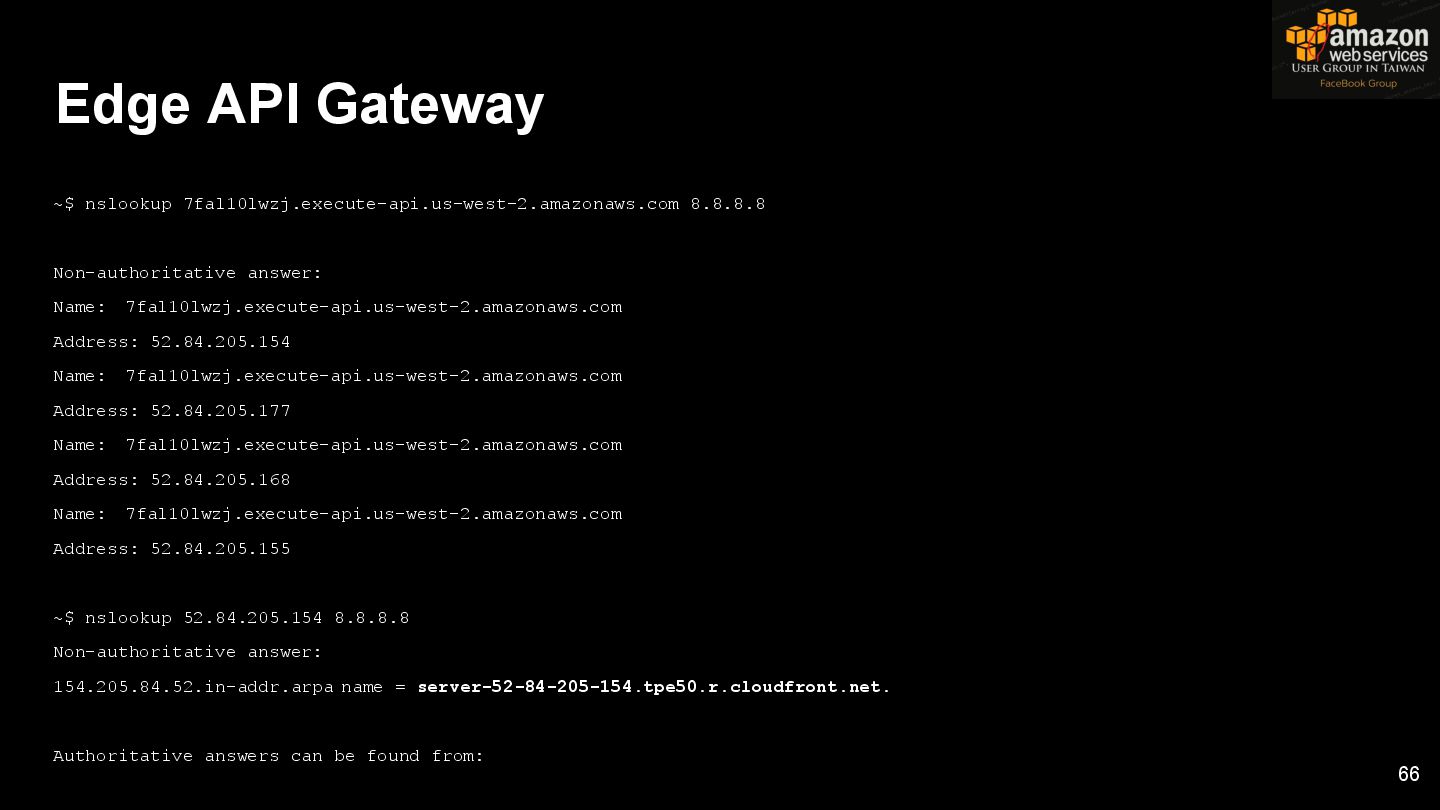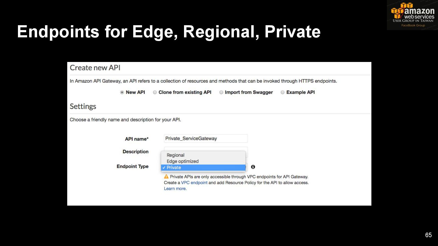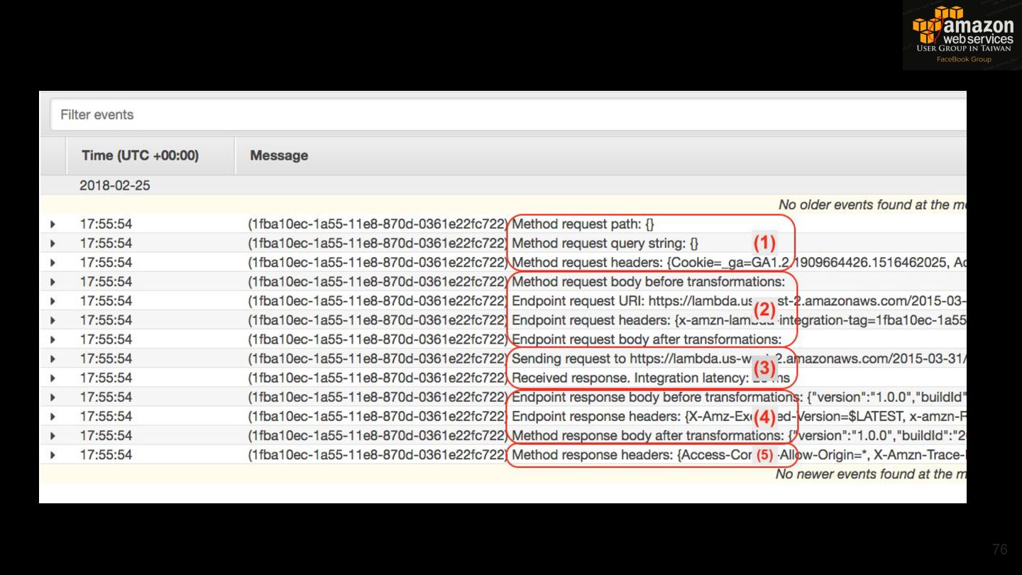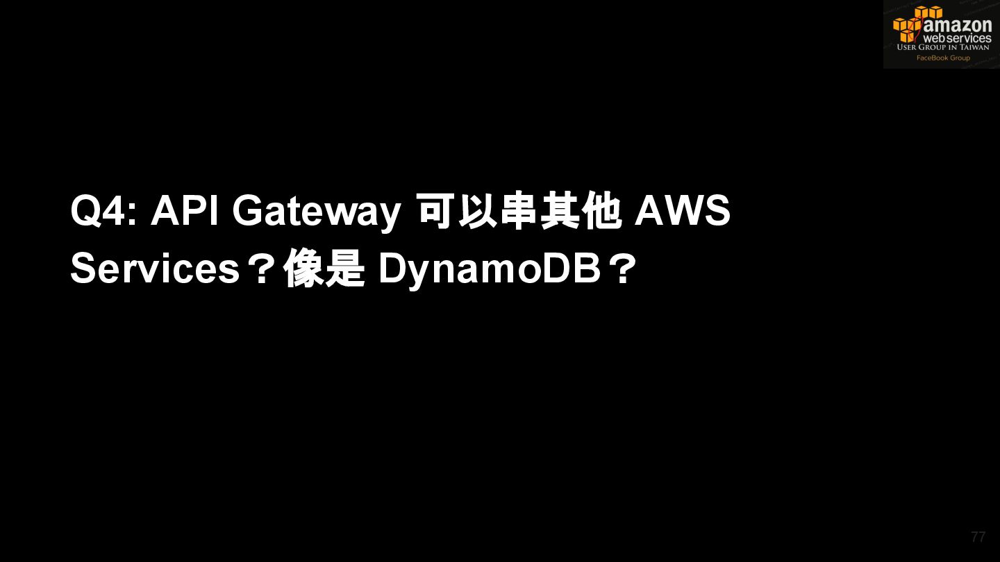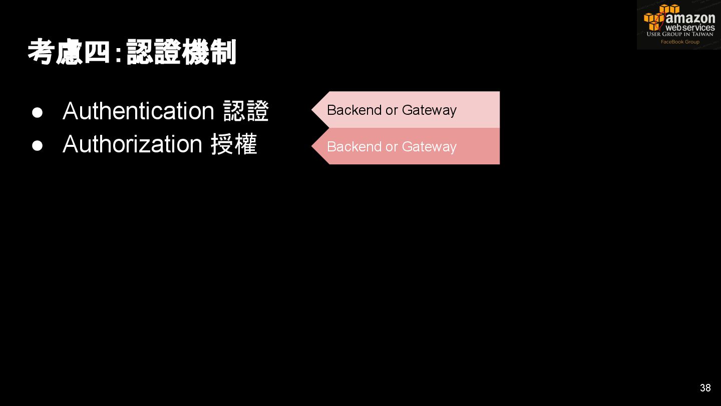 HTTPS HTTPS API Gateway Service B HTTPS CDN 用戶 WAF API Endpoint /ServiceName /Version/RestAPI 客戶 (Dev) HTTPS / TLS x-api-key 1. Rate Limit 2. Access Control 3. Monitoring 4. Usage Plan API Gateway API Gateway 46 Service A, B, C ...