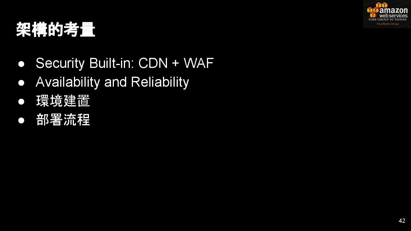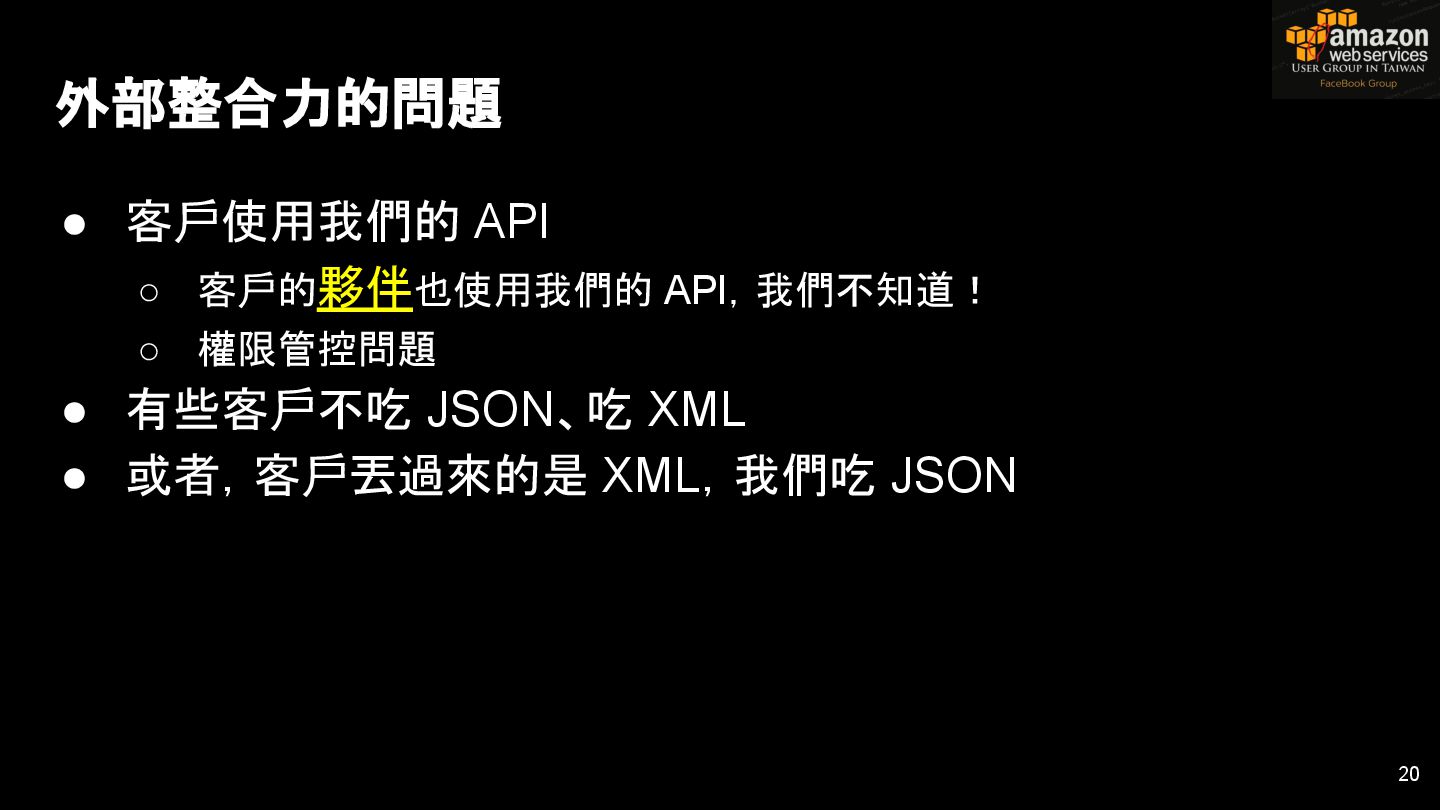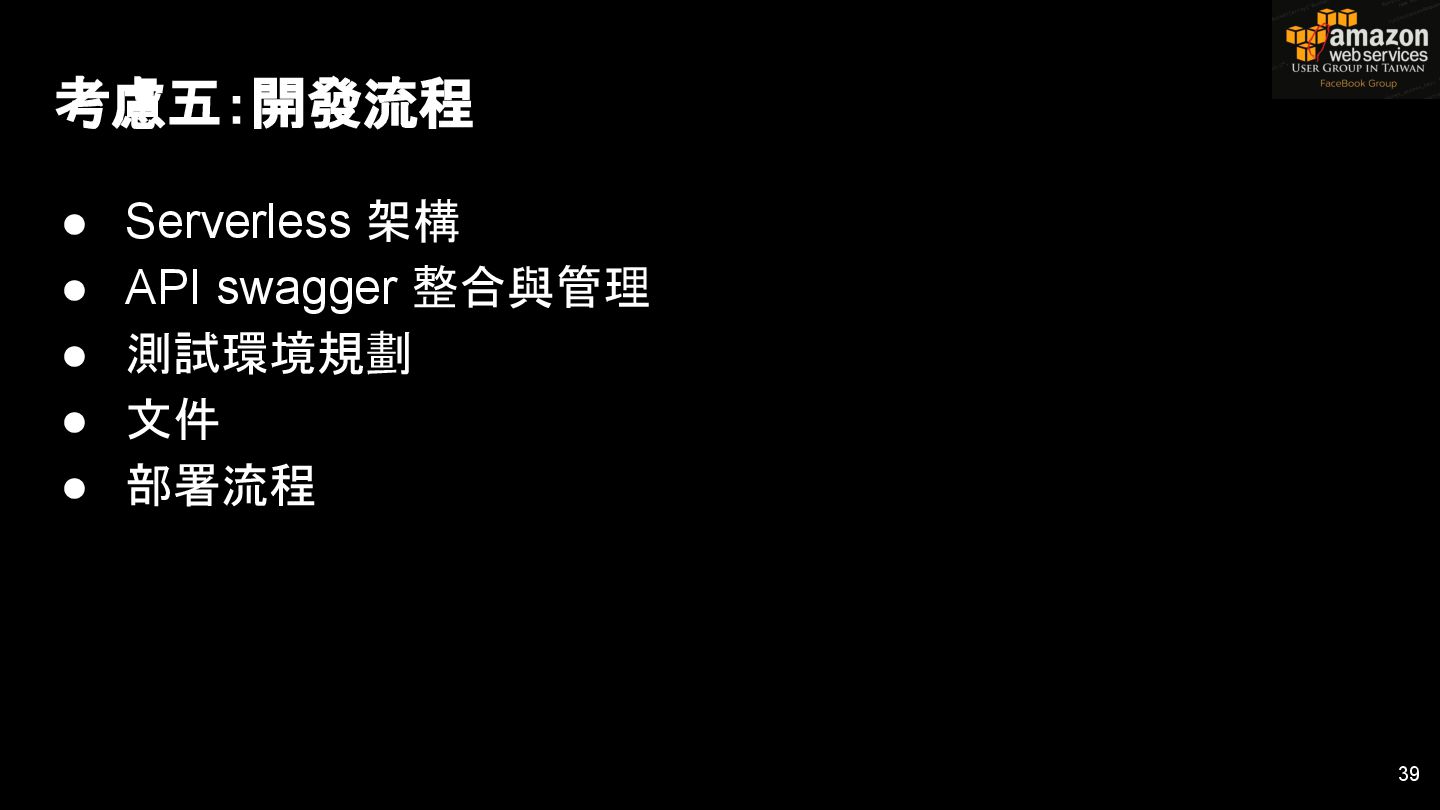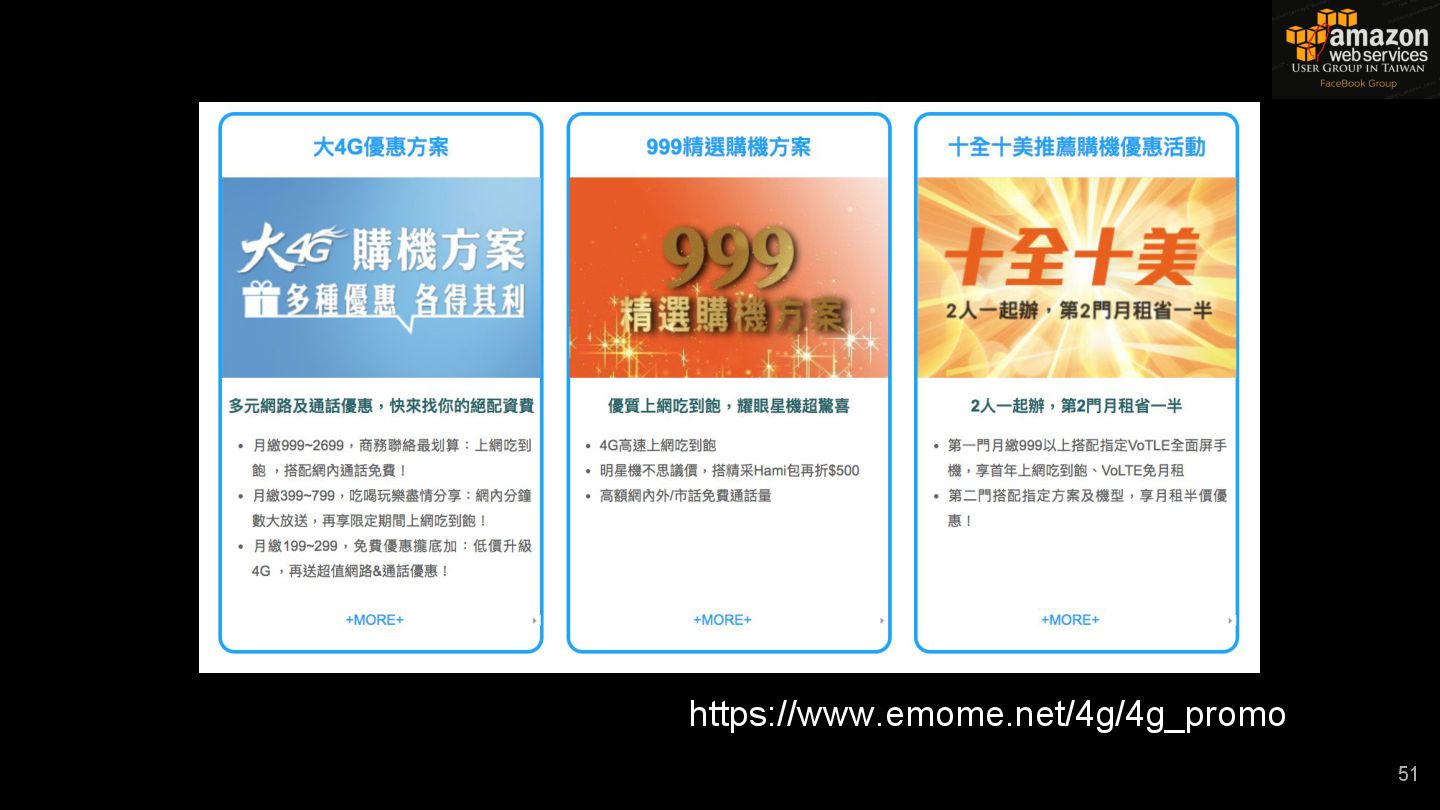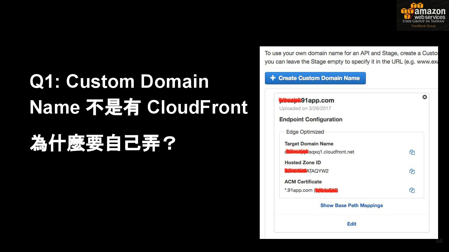 HTTPS HTTPS API Gateway Service B HTTPS CDN 用戶 WAF API Endpoint /ServiceName /Version/RestAPI 客戶 (Dev) HTTPS / TLS x-api-key 1. Rate Limit 2. Access Control 3. Monitoring 4. Usage Plan API Gateway API Gateway 46 Service A, B, C ...