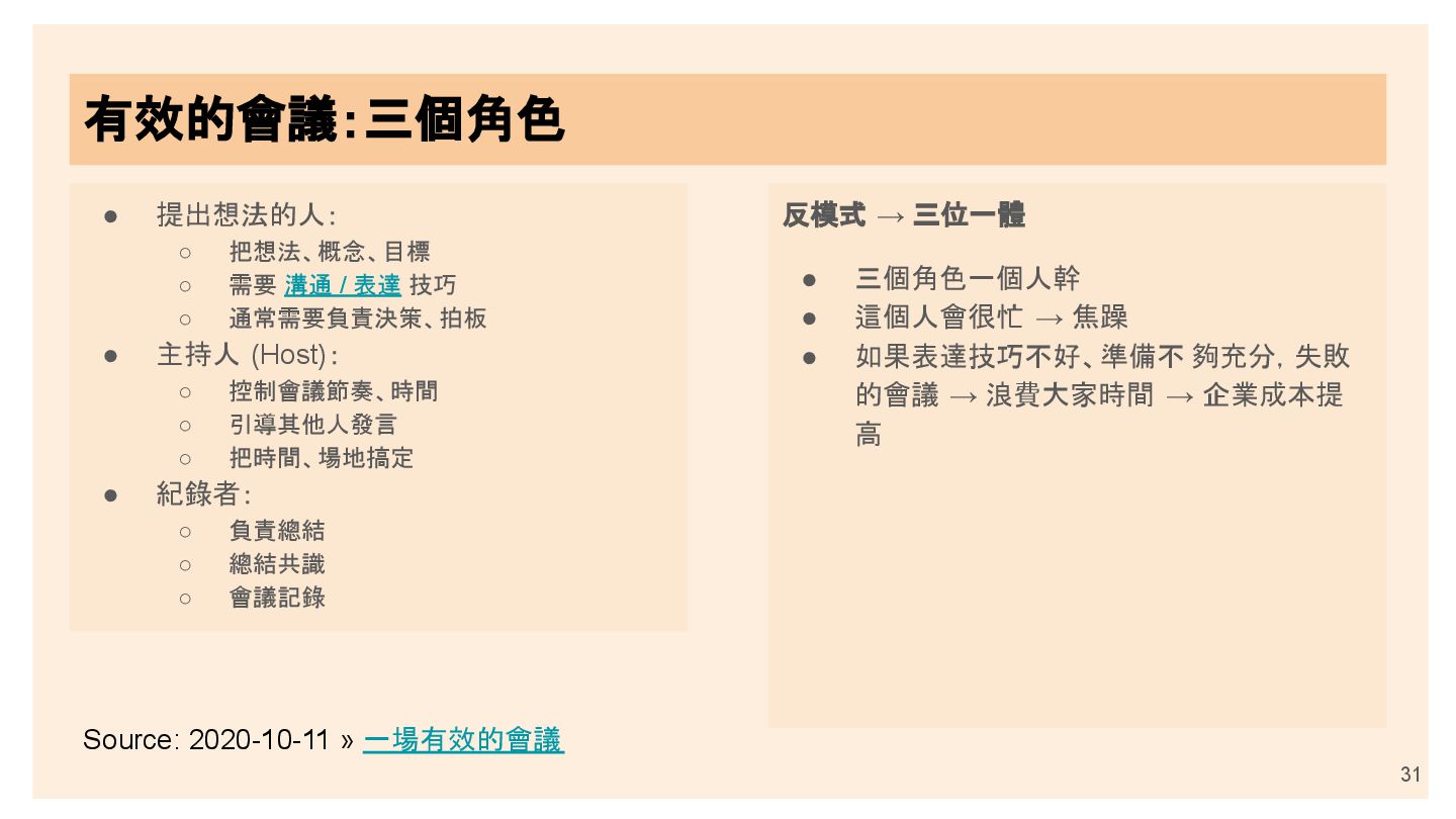- https://rickhw.github.io/2020/10/11/Management/Effective-Meetings/