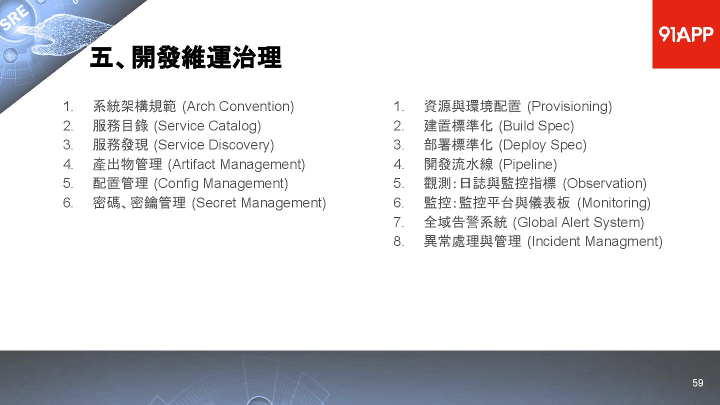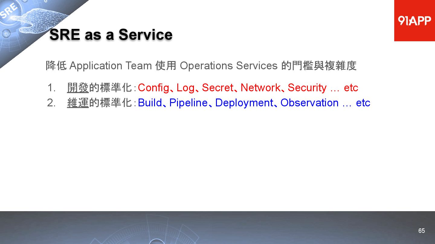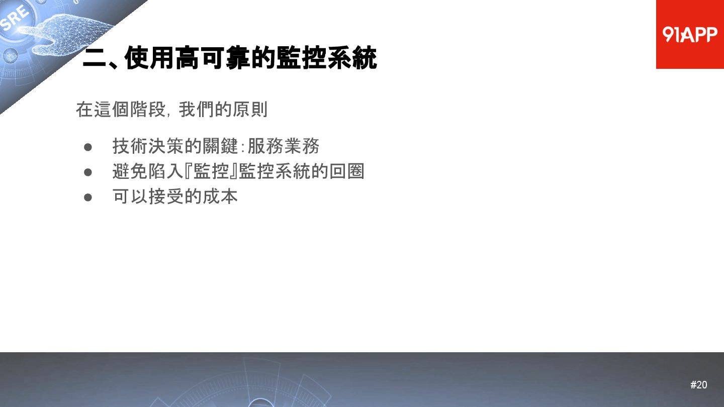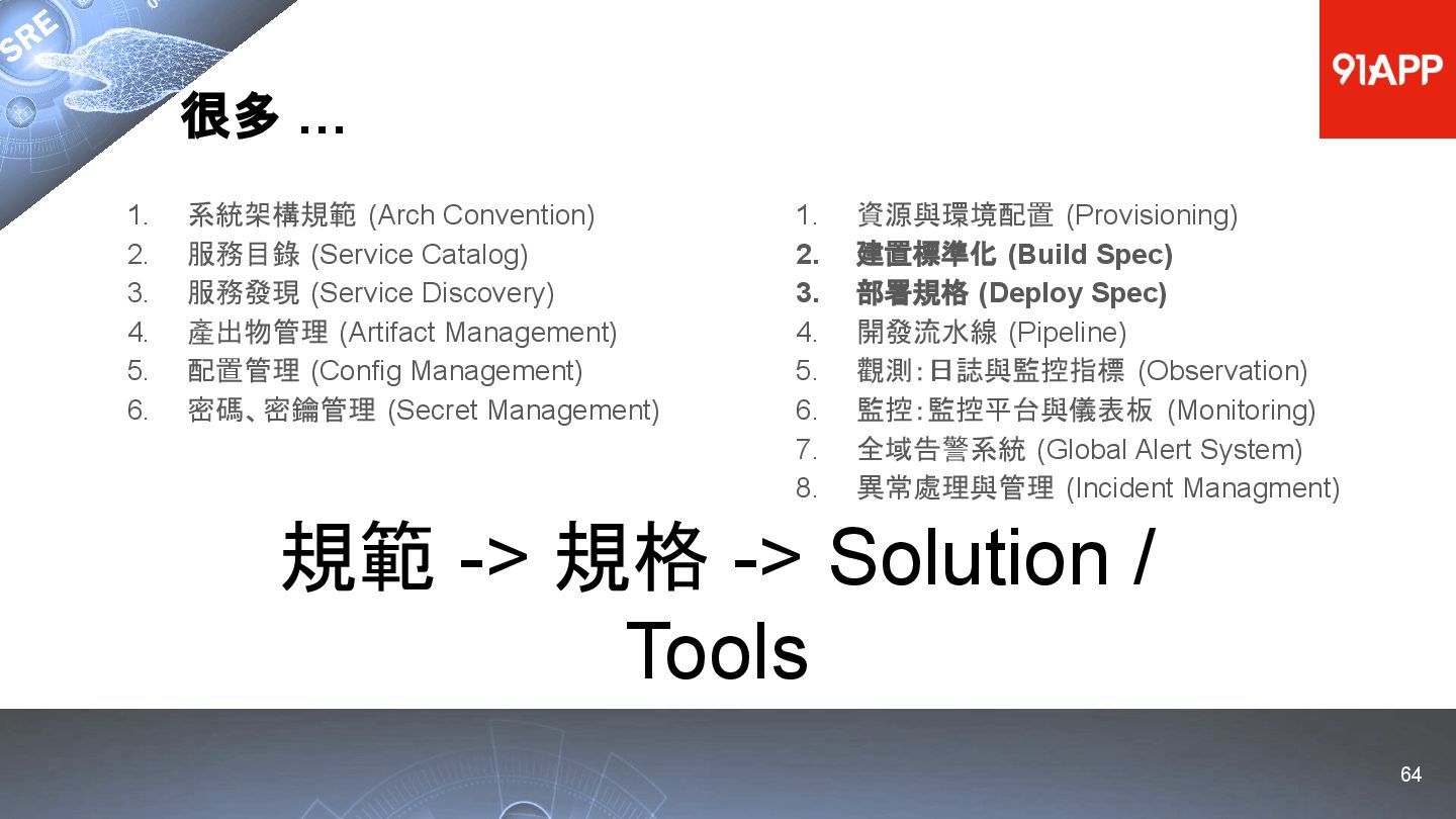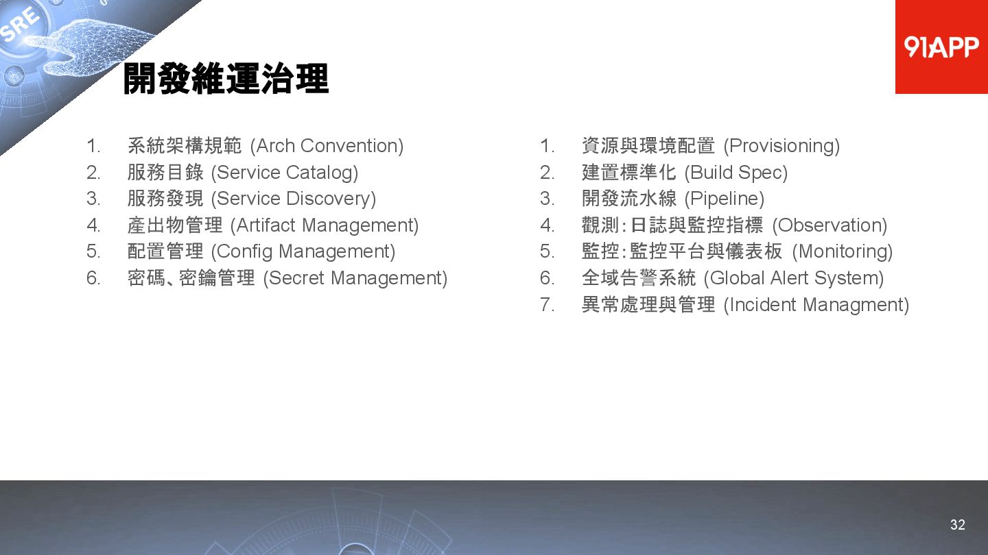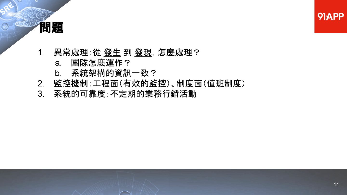 * Date: 2022/04/29 * Title: 91APP 在 AWS 上的 SRE 實踐之路 * SRE Conf 2022 https://sre.ithome.com.tw/ * Youtube: https://youtu.be/f-__anVimq0 * https://rickhw.github.io/2022/05/10/About/2022-SREConf2022/