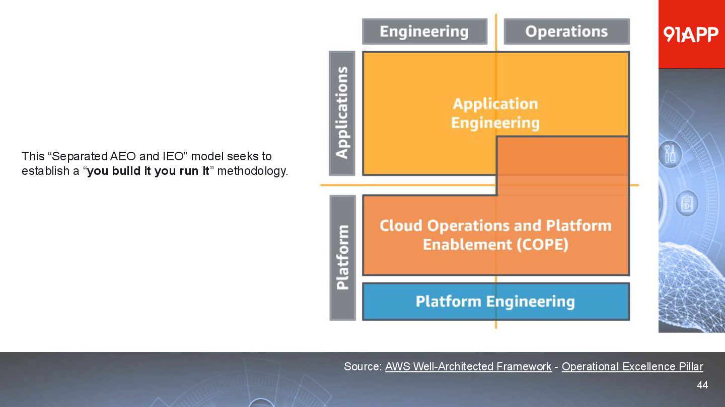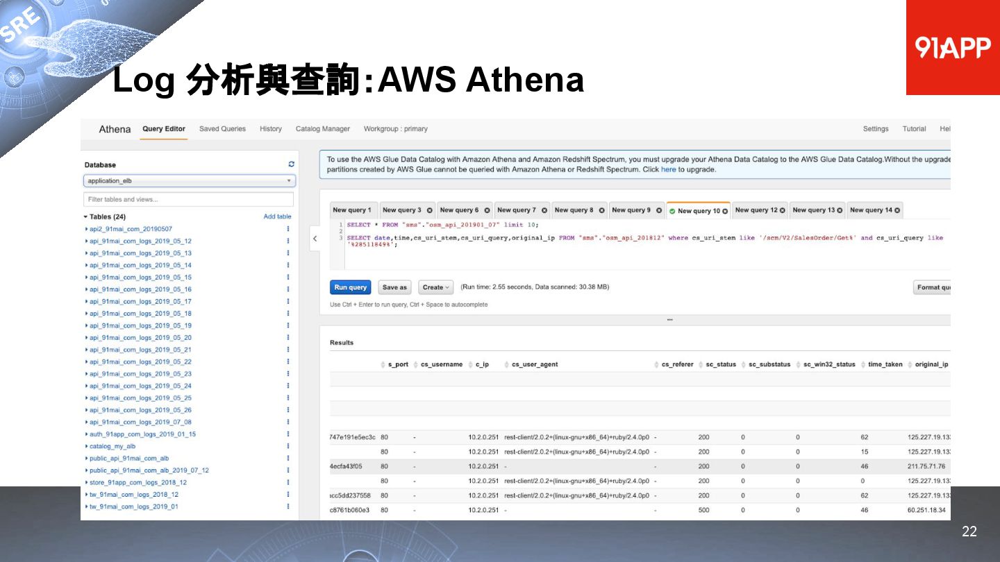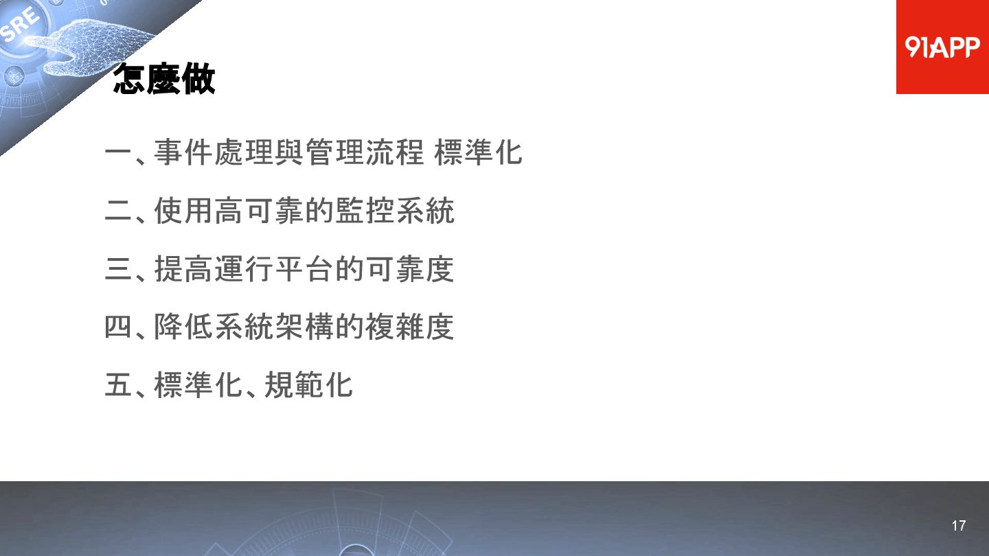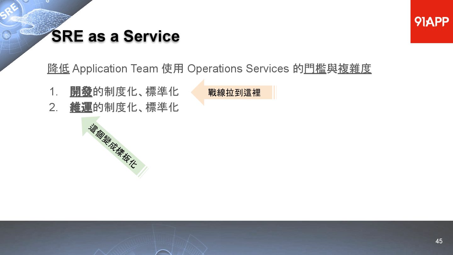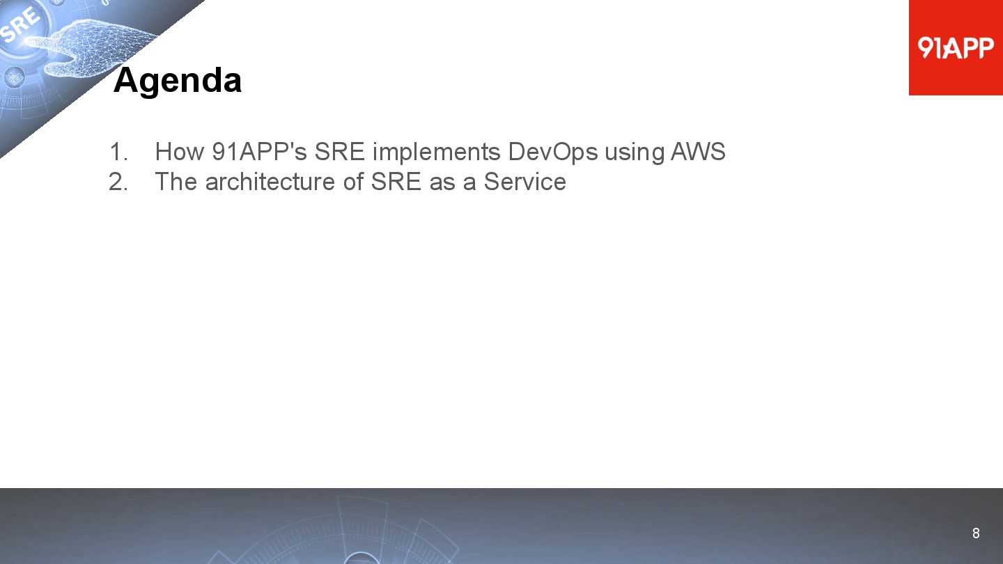 * Date: 2022/04/29 * Title: 91APP 在 AWS 上的 SRE 實踐之路 * SRE Conf 2022 https://sre.ithome.com.tw/ * Youtube: https://youtu.be/f-__anVimq0 * https://rickhw.github.io/2022/05/10/About/2022-SREConf2022/