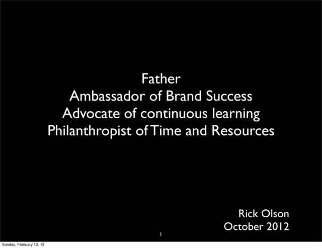 of Time and Resources Rick Olson October 2012 1 Sunday, February 10, 13