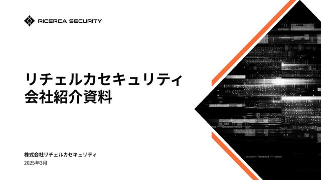 株式会社リチェルカセキュリティの会社紹介資料です。 採用情報:https://recruit.ricsec.co.jp カジュアル面談申込:https://forms.gle/Wyc3APvLg429etQB9