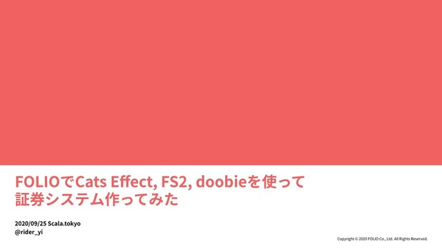 1 FOLIOでCats Effect, FS2, doobieを使って 証券システム作ってみた 2020/09/25 Scala.tokyo @rider_yi Copyright