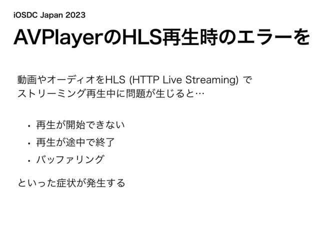 J04%$+BQBO "71MBZFSͷ)-4࠶ੜ࣌ͷΤϥʔΛ ಈըΦʔσΟΦΛ)-4 )551-JWF4USFBNJOH Ͱ ετϦʔϛϯά࠶ੜதʹ͕ੜ͡Δͱʜ w ࠶ੜ͕։࢝Ͱ͖ͳ͍