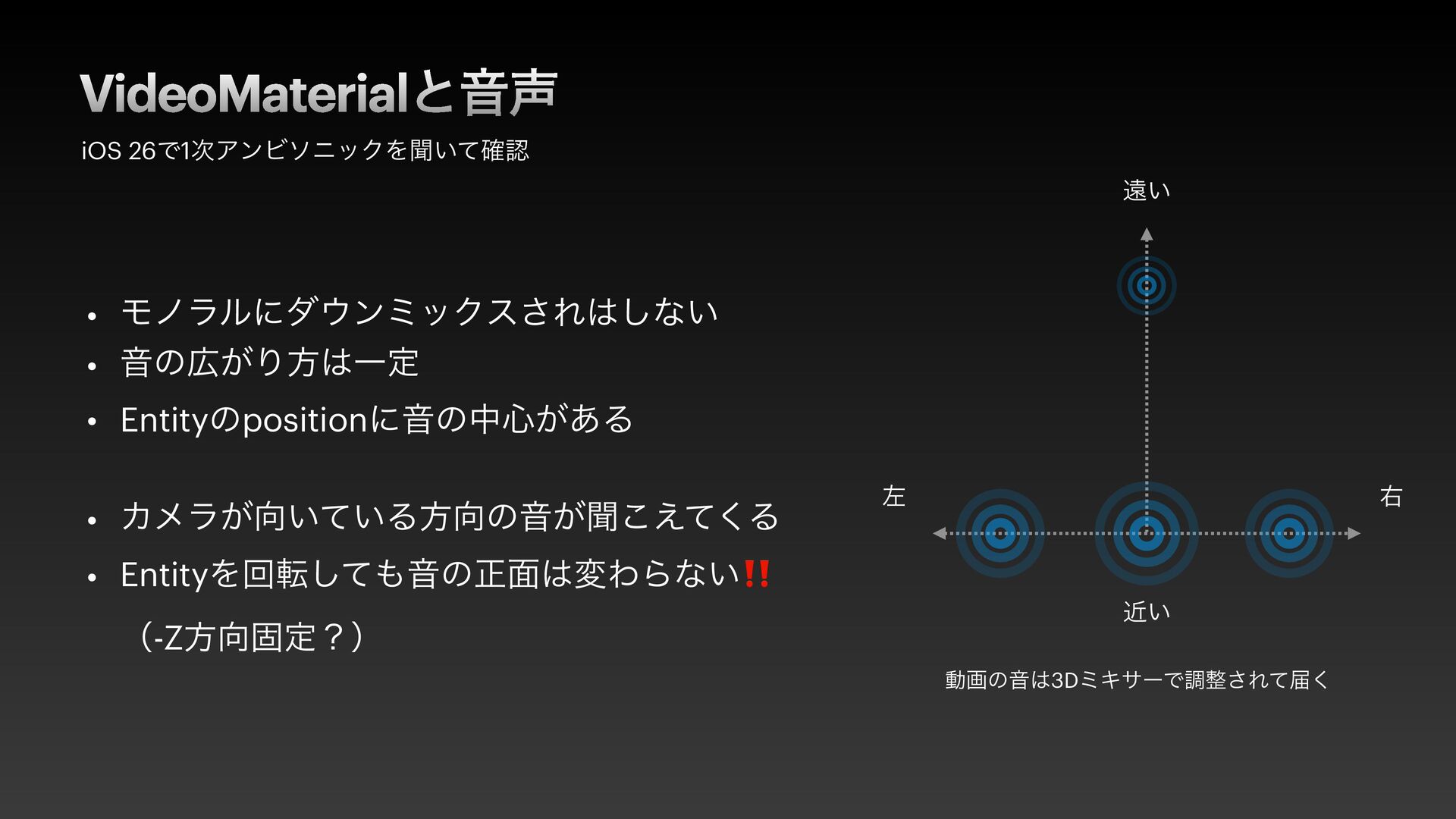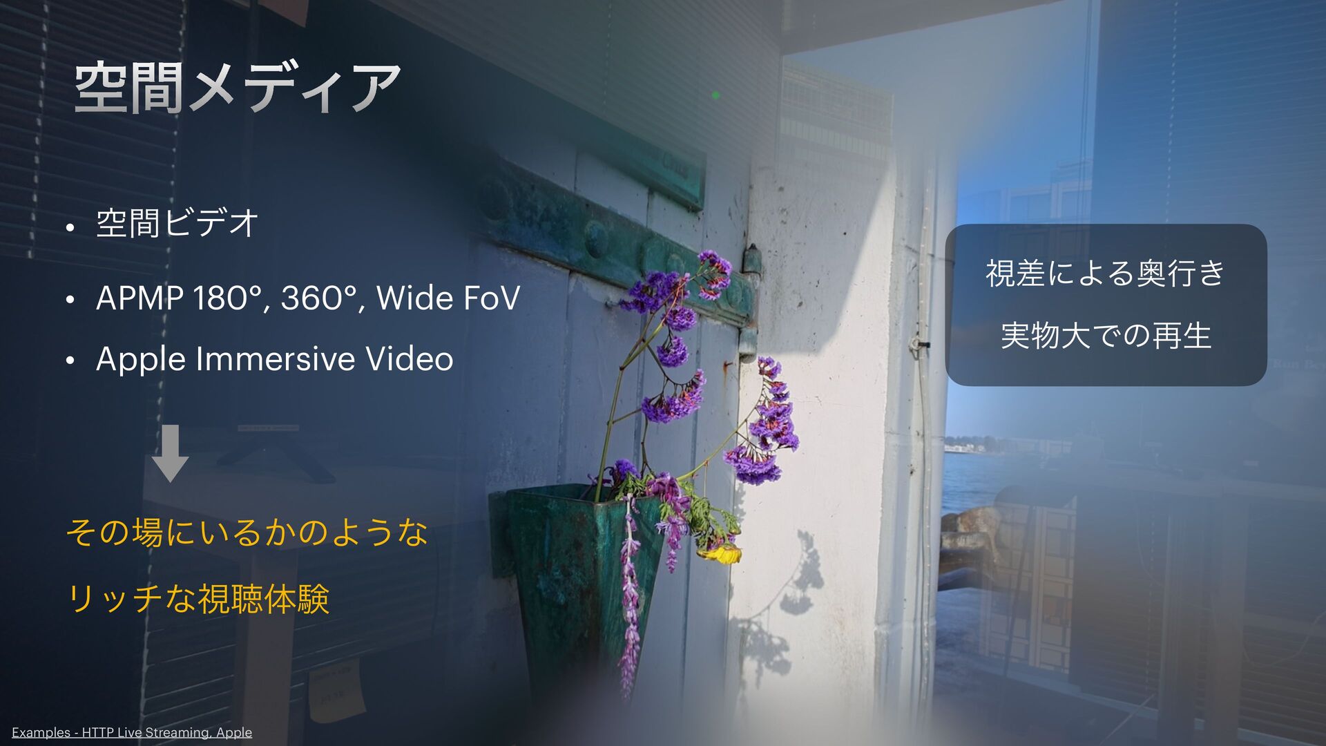 もっと気軽に試せないかしら...できれば普及しているデバイスで。そんな思いから、iPhoneで空間メディアを視聴する体験について考え、試した内容をシェアします。iPhoneは立体視こそ出来ませんが、多くのセンサーを搭載し、MV-HEVCもAmbisonicsも扱えるデバイス。それらを活用して直感的な方法を目指しました。