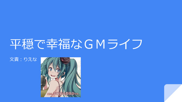 平穏で幸福なGMライフ 文責:りえな