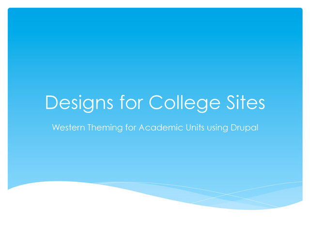 Drupal CFPA began the move to Drupal, but lost their developer and will be stalled for a bit CBE recently relaunched much of their static site, and have started working on their Drupal site Huxley will start the process after hiring a web coordinator this term Gradschool revamping their current template site, interested in Drupal College Status