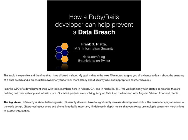Ruby Tuesday, the restaurant chain, exposed current employees’ information to a former employee. • The spreadsheet, inadvertently attached to the e-mail, contained employees’ names, Social Security numbers, bank name, bank account type, bank account numbers and routing numbers. • Ruby Tuesday immediately tried to recall the e-mail, and contacted the recipient who confirmed deletion of the e-mail. All of those whose information was in the spreadsheet were contacted by phone and then in writing. All those notified were offered free credit monitoring services for a year. http://www.databreaches.net/e-mail-gaffe-exposed-ruby-tuesday-employee-financial-data-to-a-former-employee/ ! An e-mail gaffe by a Support Center employee Ruby Tuesday exposed current employees’ information to a former employee. ! The spreadsheet, inadvertently attached to the July 8 e-mail, contained employees’ names, Social Security numbers, bank name, bank account type, bank account numbers and routing numbers. ! Ruby Tuesday immediately tried to recall the e-mail, and contacted the recipient who confirmed deletion of the e-mail. All of those whose information was in the spreadsheet were contacted by phone and then in writing. All those notified were offered free credit monitoring services for a year.