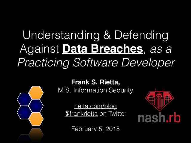 A presentation on security incidents that lead to customer data breaches, which have been happening at an increasing rate, from the latest Anthem Blue Cross breach, to Target, to Home Depot, to breaches including the MongoHQ incident that lead to the BufferApp compromise.