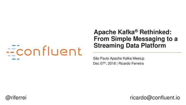 diferentes! “Alice has been to SFO, NYC, Rio, Sydney, Beijing, Paris, and finally Berlin.” “Alice is in SFO, NYC, Rio, Sydney, Beijing, Paris, Berlin right now.” ⚑ ⚑ ⚑⚑ ⚑ ⚑ ⚑ ⚑ ⚑ ⚑⚑ ⚑ ⚑ ⚑ Cenário 1: Status da Milhagem? Cenário 2: Localização Atual? KStream KTable