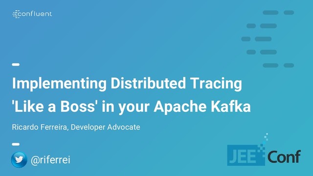 tracing in JVM-based applications that you don't have the source-code. • Examples: REST Proxy, Kafka Connect and KSQL Servers. • Allows you to group μServices based on the topics they use. https://github.com/riferrei/jaeger-tracing-support @riferrei @jeeconf