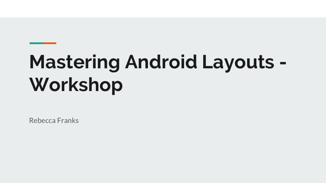 In this 4 hour workshop, Rebecca walked through the different types of layouts in Android and where they are useful. She then demonstrated how to use ConstraintLayout and what the different tool support is like with ConstraintLayout. The audience then built 3 different layouts using ConstraintLayout to try and better their skills with ConstraintLayout.