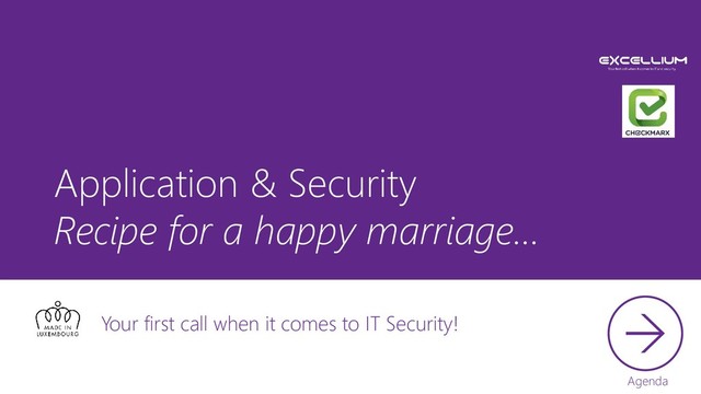 Benefits to integrate AppSec earlier in the project Which kind of validations can be integrated? What is the impact on the project cost? Benefits of the “Security As A Service” approach Example: Security checks in a Continuous Integration Platform Our Software Factory for our own products
