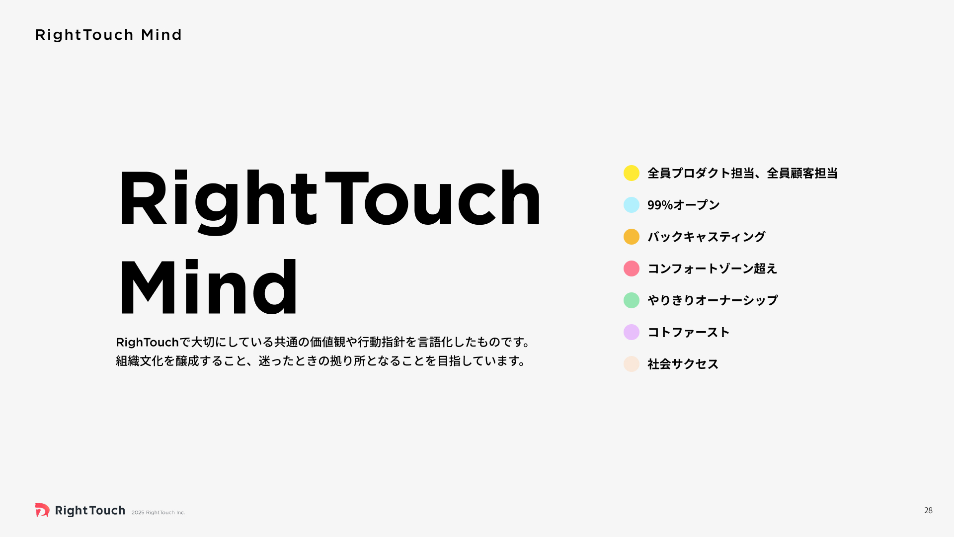 RightTouchのミッションや目指すこと、事業内容、今後の事業展開やカルチャーをまとめたカンパニーデックです。