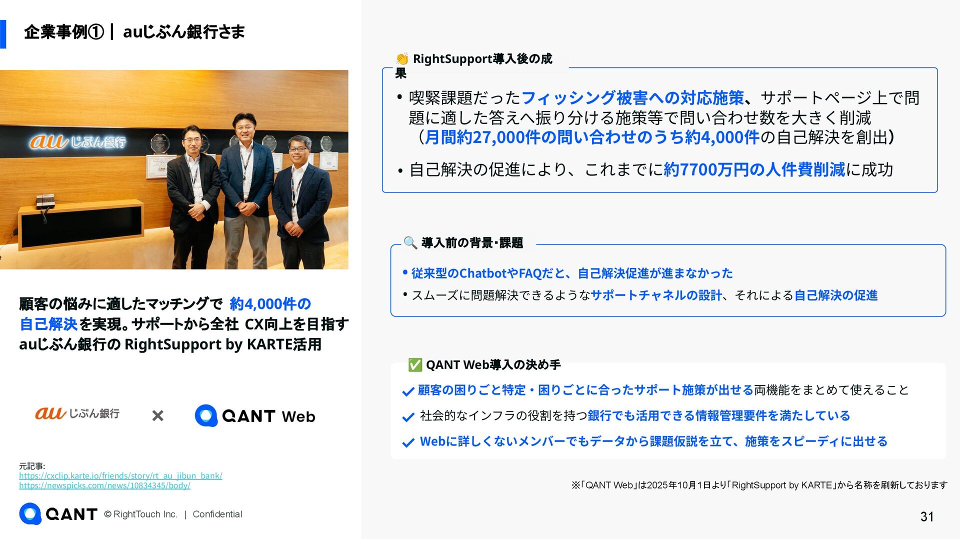 31 ※「QANT Web」は2025年10月1日より「RightSupport by KARTE」から名称を刷新しております