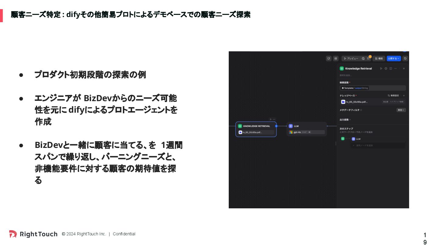 © 2024 RightTouch Inc. | Confidential 顧客ニーズ特定 : difyその他簡易プロトによるデモベースでの顧客ニーズ探索 1 9
